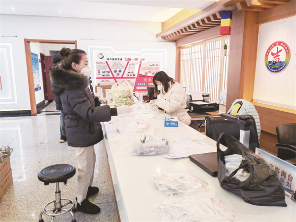 龙门街道的工作人员在分装药品