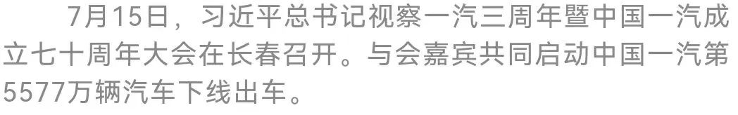 今天(7月15日),习近平总书记视察一汽三周年暨中国一汽成立七十周年大会在长春召开。中国科学技术协会主席万钢出席大会并致辞。省委书记景俊海讲话。全国政协常委、经济委员会副主任苗圩,省委副书记、省长胡玉亭出席大会。