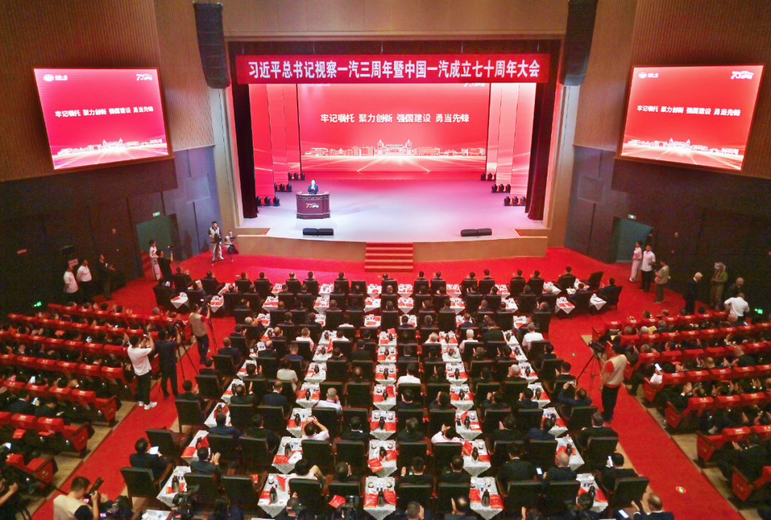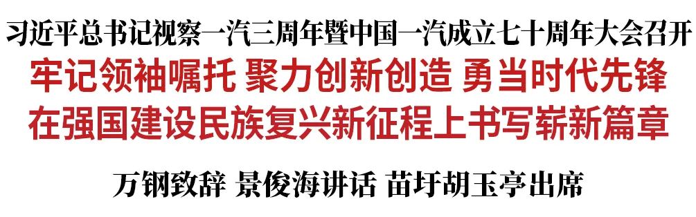 万钢向中国一汽三年来取得的丰硕成果表示诚挚祝贺,向七十年来努力拼搏、不懈奋斗的一汽人致以崇高敬意。他说,作为新中国汽车工业的“长子”,一汽成立七十年来始终坚守“产业报国、工业强国、强大中国汽车产业”的初心使命,推进了具有深远产业影响的创新实践,既彰显了勇毅前行的深厚历史底蕴,又为中国汽车产业加快实现“从大到强”积累了宝贵经验财富。希望中国一汽深入贯彻习近平总书记重要讲话精神,不断突破关键核心技术,持续做强民族汽车品牌,早日成为世界一流企业,努力为强国建设、民族复兴作出新的更大贡献。要坚持自主创新,继续加强关键核心技术研发,把中国新能源汽车产业创新主动权、发展权牢牢掌握在自己手中。要加速产业转型,全力以赴实现新能源汽车高质量发展,同时推动内燃机与电驱动技术融合发展,努力研发新型插电式、增程式混合动力系统。要促进开放融合,持之以恒与全球高水平企业、高校和科研机构开展广泛深入合作,推动自身发展与电动化、智能化、低碳化趋势深度融合,加速能源和交通绿色低碳转型。景俊海代表省委、省政府,向中国一汽成立七十周年表示热烈祝贺,向一汽全体干部职工表示亲切慰问,向七十年来所有为一汽发展作出贡献的老领导老同志和国内外各界人士致以崇高敬意。他说,一汽是新中国汽车工业的“摇篮”。七十年来,一汽矢志不渝践行初心使命,谱写了砥砺奋进、开拓创新的壮丽凯歌,引领了中国汽车工业的历史巨变、奋斗历程、辉煌荣耀。三年前,习近平总书记视察吉林时专程到一汽考察指导,充分体现了对一汽创新发展的关怀和期许。希望中国一汽牢记习近平总书记殷殷嘱托,主动顺应汽车产业电动化、智能网联化发展趋势,深度融入吉林“一主六双”高质量发展战略,努力在吉林全面振兴中再立新功、再创辉煌。一要始终坚持自信自立,大力实施民族汽车品牌发展战略,奋力在制造强国建设上展现新担当。二要始终坚持创新创造,尽快掌握关键核心技术,推动汽车产业技术创新、管理创新、模式创新,奋力在科技自立自强上取得新突破。三要始终坚持集群集聚,加快形成具有国际竞争力的完整汽车产业链条,奋力在打造现代化汽车产业生态上实现新作为。四要始终坚持交流交融,持续深化与吉林省各市(州)合作,奋力在央地合作共赢上迈出新步伐。吉林省委、省政府将一如既往举全省之力、集全省之智,助推一汽加快向世界一流企业迈进,支持一汽在强国建设、民族复兴新征程上书写中国民族汽车工业崭新篇章。
