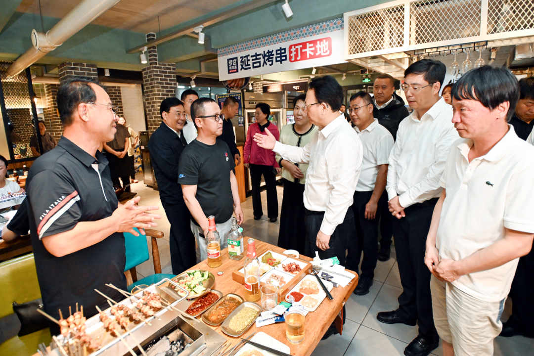 这几年,延吉旅游热度持续升温,许多外地游客慕名而来,体验特色民族风情。延吉市民俗园不夜城灯光璀璨,许多游客身着朝鲜族服饰拍照打卡。景俊海实地察看园内商铺宾馆经营情况。了解到延吉住宿一房难求,他要求充分利用周边市县住宿资源,尽快新建一批大型酒店、精品民宿,有效提升旅游承载能力。景俊海走进一家便利店,与店员亲切交流。听说几位年轻员工从外省大城市返乡就业,他鼓励大家扎根吉林、拼搏奋斗,建设美好家乡,实现人生价值。烟集街是延吉知名的餐饮一条街。景俊海随机走进几家餐馆店铺,与正在就餐的外地游客交谈互动,热情介绍登长白山、游松花江等特色旅游项目。得知有上海游客喜爱吉林良好气候生态、已在延吉购房休闲度假,景俊海非常高兴,希望大家多多宣传推介吉林,带领更多朋友到吉林饱览美景、享受美食、体验生活。景俊海来到延吉大学城网红墙,强调要综合运用各类社交媒体、电商平台等资源,持续增强旅游宣传推介针对性、有效性,促进更多游客走进吉林、了解吉林、热爱吉林。清晨的延吉水上市场游人如织、熙熙攘攘。景俊海详细了解特色食品销售情况,鼓励商户立足延边特色,发挥资源优势,诚信经营、打出品牌,让游客常回味、还想来。他叮嘱延边州和延吉市加强燃气和食品安全检查,努力营造安全消费环境。
