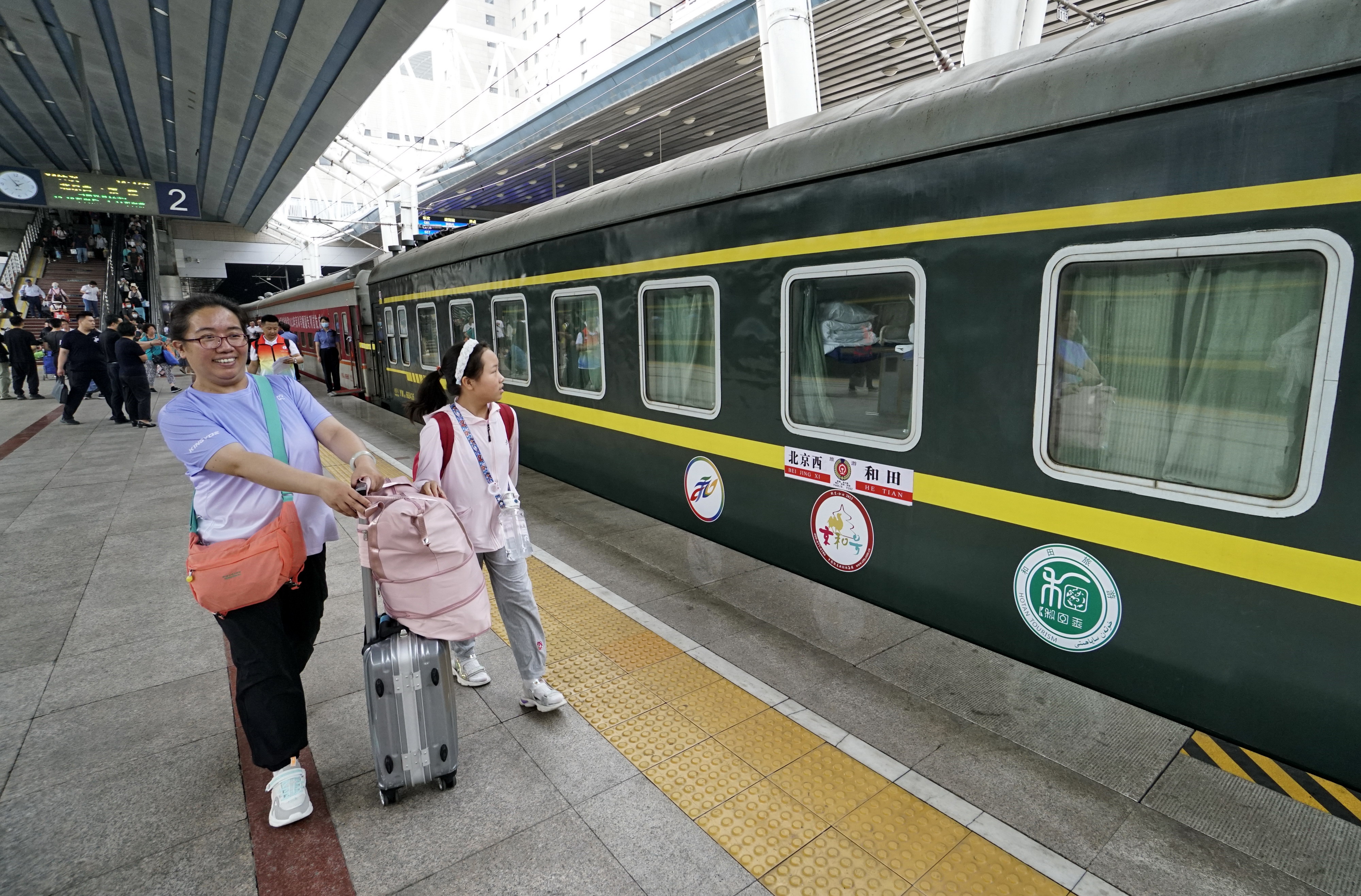 7月24日,北京到新疆和田的“京和号”旅游专列准时从北京西站出发,这是中国铁路北京局集团2023年首趟开往新疆的旅游专列。“京和号”援疆旅游专列自2015年起先后开行28列,累计运输游客约1.4万人次,有效促进了北京与新疆和田两地交流,成为北京与新疆旅游互通的桥梁。
