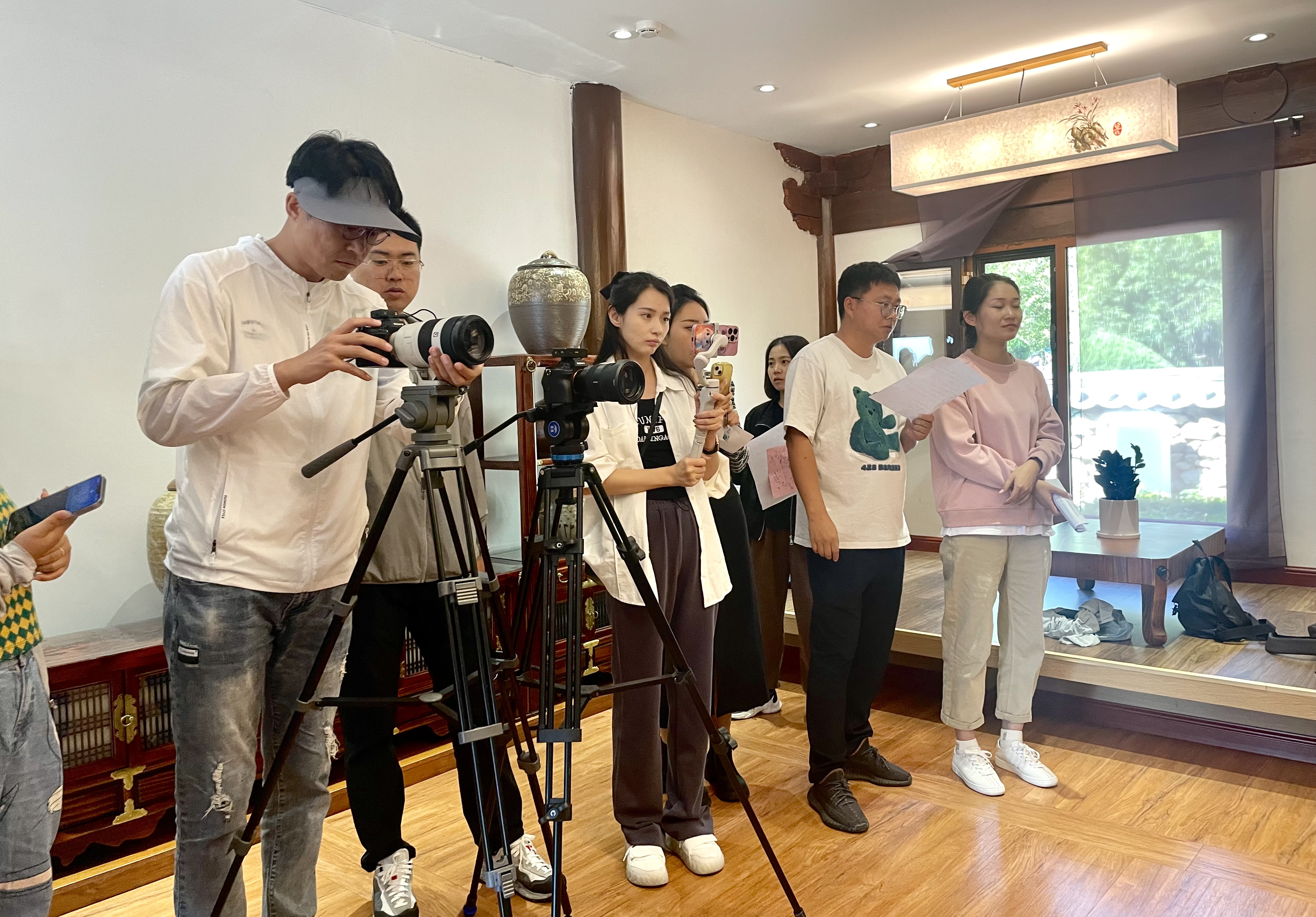 “人物访谈的拍摄,背景要制造出空间感,镜头里要有交流的视线……”在指导老师的带领下,学员们按照审定的方案,迅速投入到紧张的拍摄之中。从8点半开始,一直持续到下午5点,他们陆续完成了专访、拍摄朝鲜族特色民居、景区游客体验朝鲜族民族服装等环节。学员们努力感受镜头带来的意境和美感,反复打磨作品,力争拍出最优画面。