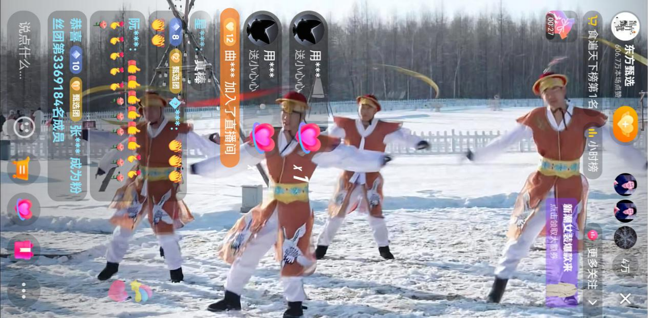 “远赴长白惊鸿宴,一睹瑶池盛世颜。”12月9日至10日,“东方甄选”吉林专场在长白山开播,十余位主播通过“东方甄选”抖音直播间、“东方甄选”APP直播间,轮番带货吉林本地特产,推荐吉林冰雪文旅。