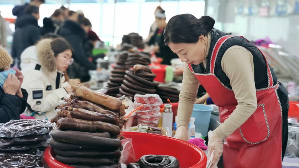 龙年春节将至,大街小巷张灯结彩,处处洋溢着浓浓的年味。1月23日,记者走进延吉西市场看到,明太鱼、泡菜、米酒、打糕等延边特产琳琅满目,米肠、温面、汤饭、水豆腐等当地正宗小吃香味四溢,各地游客游览延边之余,先尝鲜、再邮寄,不忘为家乡新年的饭桌上增添地道的“延边味”。