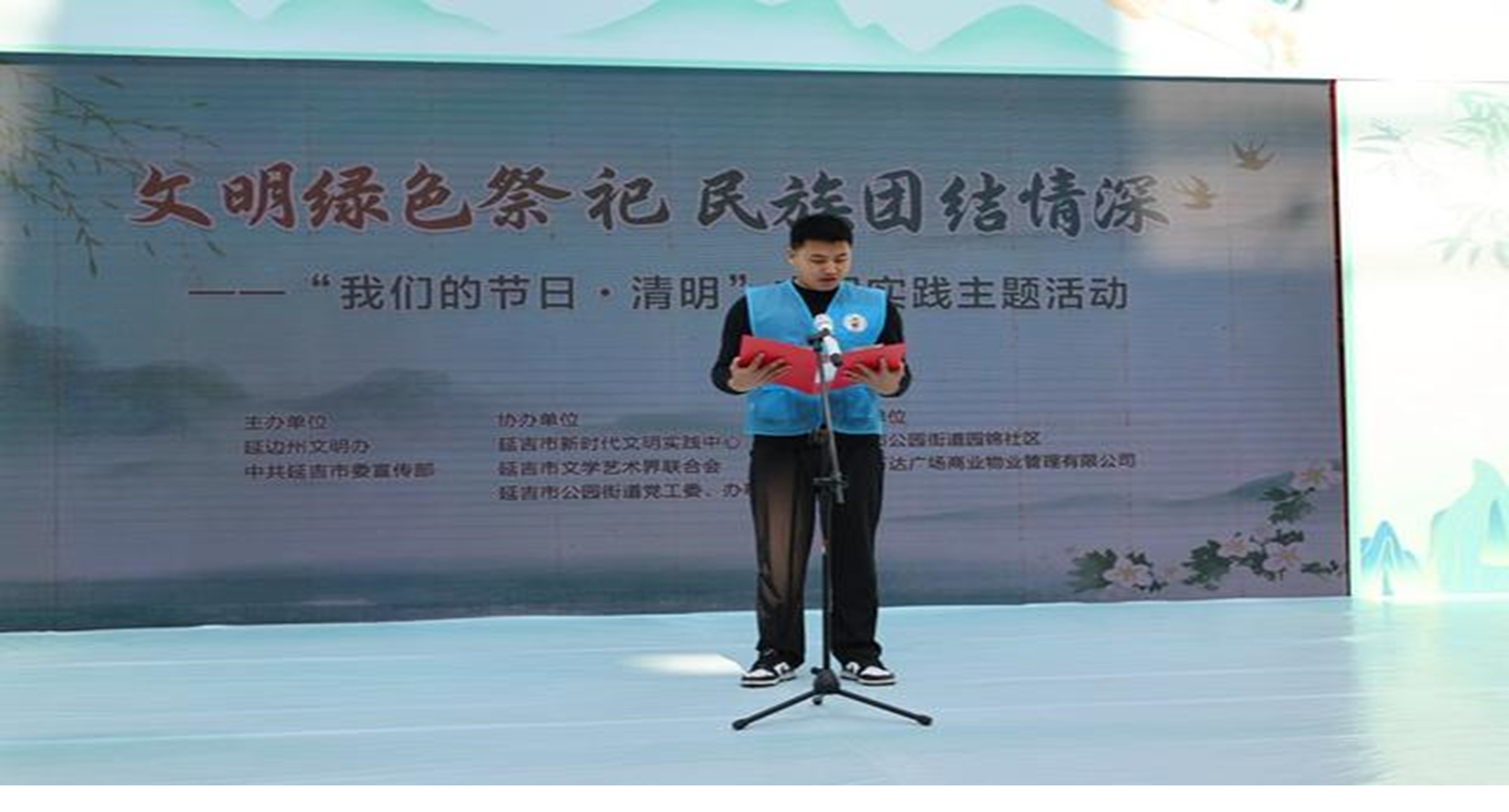 州暨延吉市举行“我们的节日·清明——文明绿色祭祀 民族团结情深”文明实践活动。志愿者代表宣读文明祭扫倡议书,倡导大家以文明健康方式寄托哀思;各族群众通过诗词朗诵、民俗介绍、歌曲演唱等形式,表达对革命先烈的崇高敬意和深切缅怀;“百姓名嘴”理论宣讲志愿者结合清明节历史文化内涵,进行铸牢中华民族共同体意识宣讲,推动各族群众广泛交往交流交融。