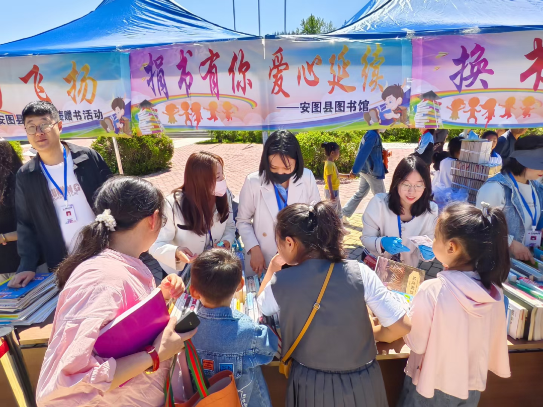 活动现场设惠民书市、图书漂流、爱心捐书、换书大集、投壶送书、书法绘画展示、集章换奖品等7个区域,安图县内各大书店将社科、经典文学、中小学读物、少儿读物、科普、教辅材料等热门图书进行展销,让市民最大限度享受到推广活动的购书优惠。安图县图书馆还提供800册图书,为广大读者提供图书交换的机会。