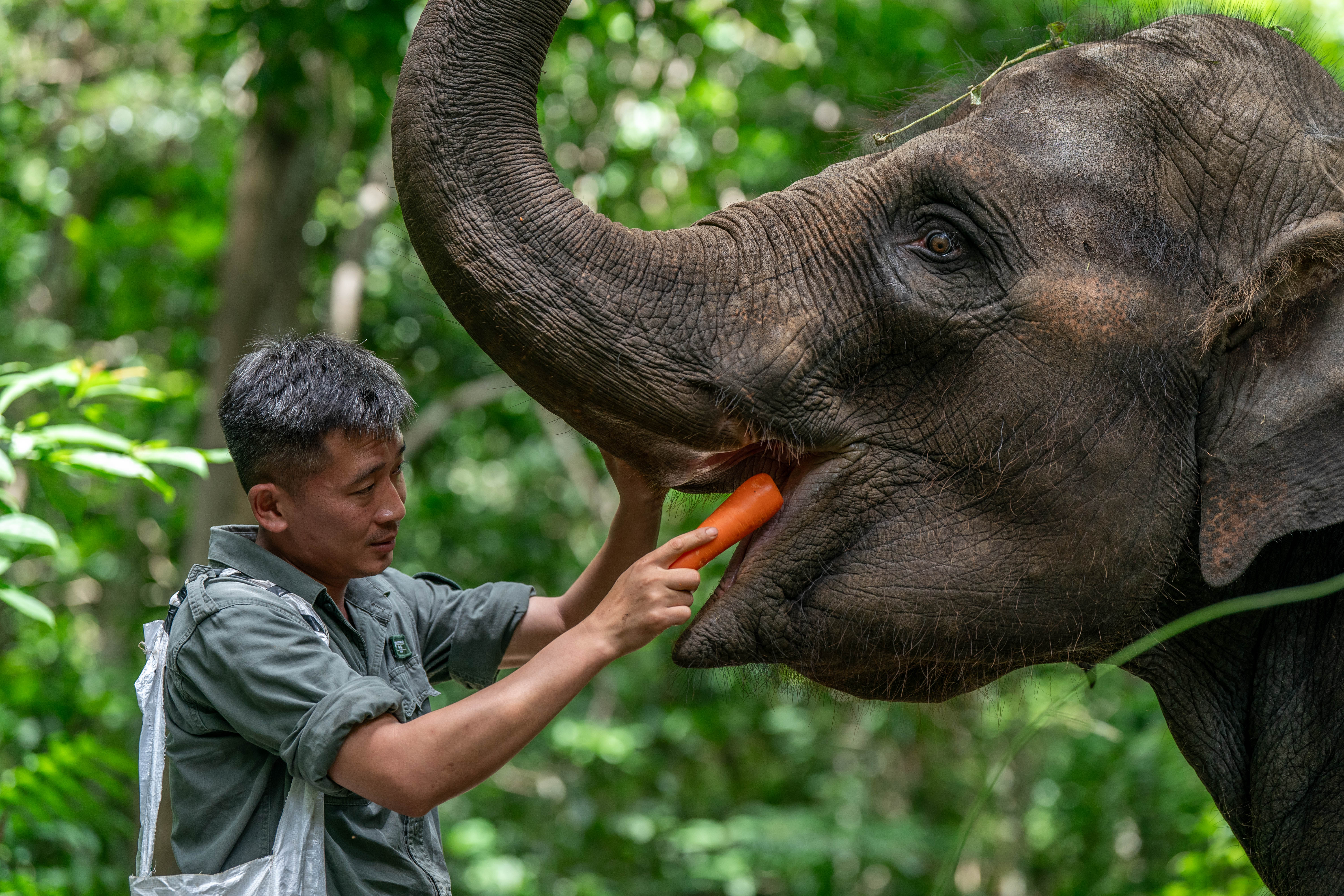 云南省西双版纳亚洲象救护与繁育中心是我国目前唯一以亚洲象收容、救助和繁育研究为核心的科研基地。截至2024年6月,该中心累计收容、救助野生亚洲象23头,其中龙龙、羊妞、小强等9头野生亚洲象收容在救护中心。这里的专职驯养员“象爸爸”会悉心照料它们的生活,并带它们进行野化训练、定期体检,努力帮助它们早日回归自然。