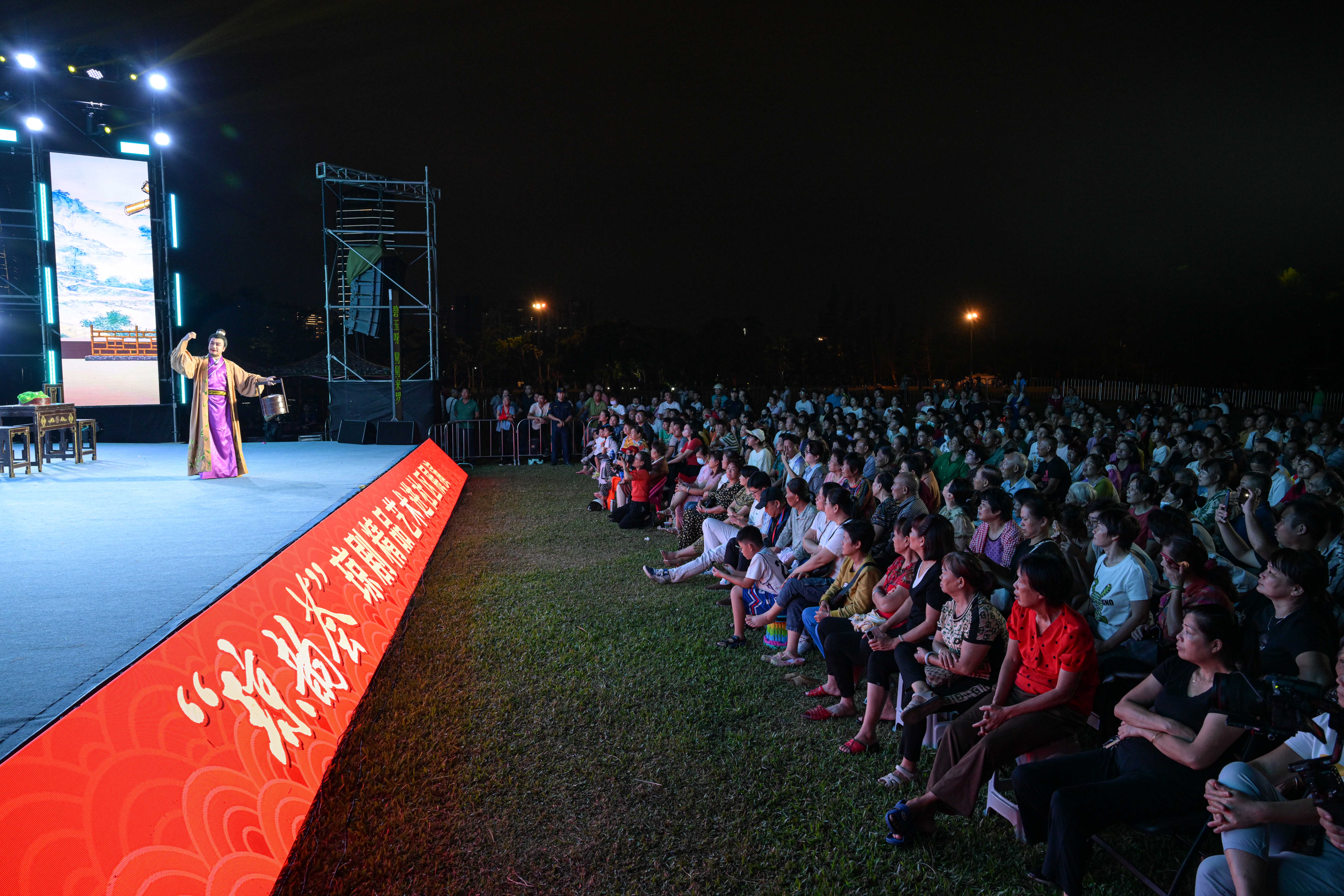 10月6日,“琼韵荟”琼剧精品艺术进社区展演在海南省海口市万绿园举行。来自海南省琼剧院一团的演员们为观众献上了古装琼剧《巡按审妻》。观众在观看琼剧过程中,感受非遗文化的魅力。