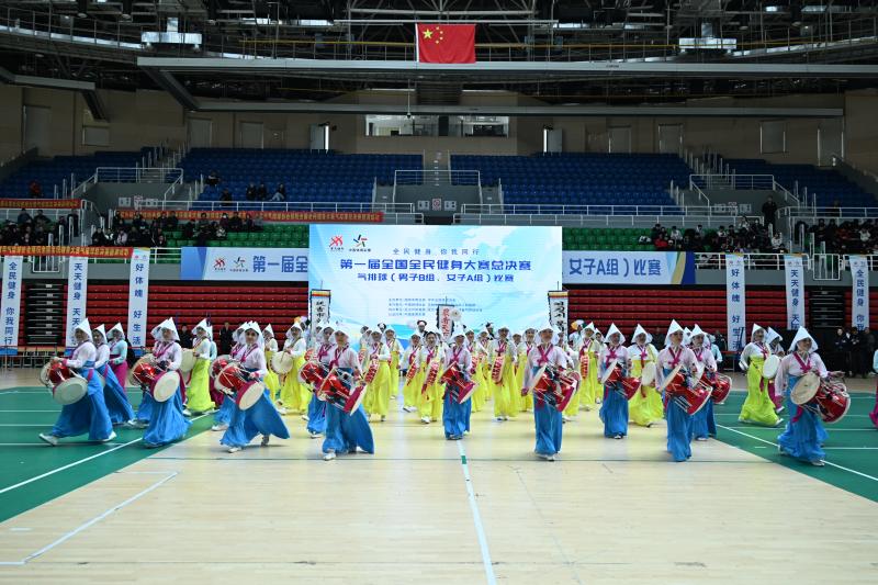 11月2日,第一届全国全民健身大赛气排球总决赛开幕式在位于延吉市的州体育中心综合馆举行。来自全国各地14个省(区、市)的16支参赛代表队的运动员、教练员、相关工作人员以及裁判员共1000余人参加开幕式。