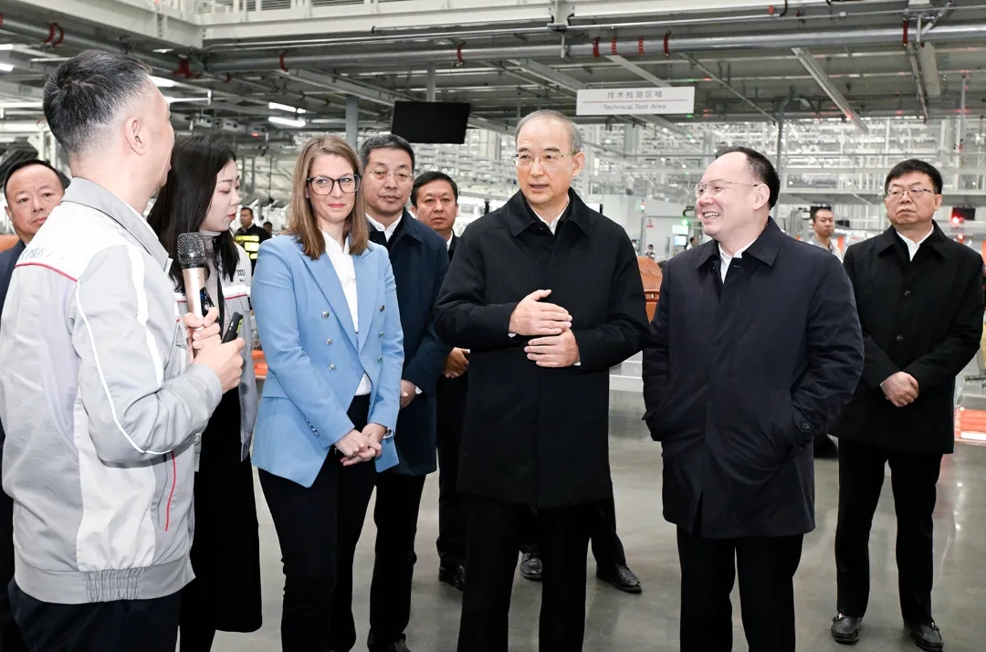 11月11日,省委书记黄强在长春调研,实地察看奥迪一汽新能源汽车项目总装车间生产线,详细了解技术工艺、产品定位等情况。