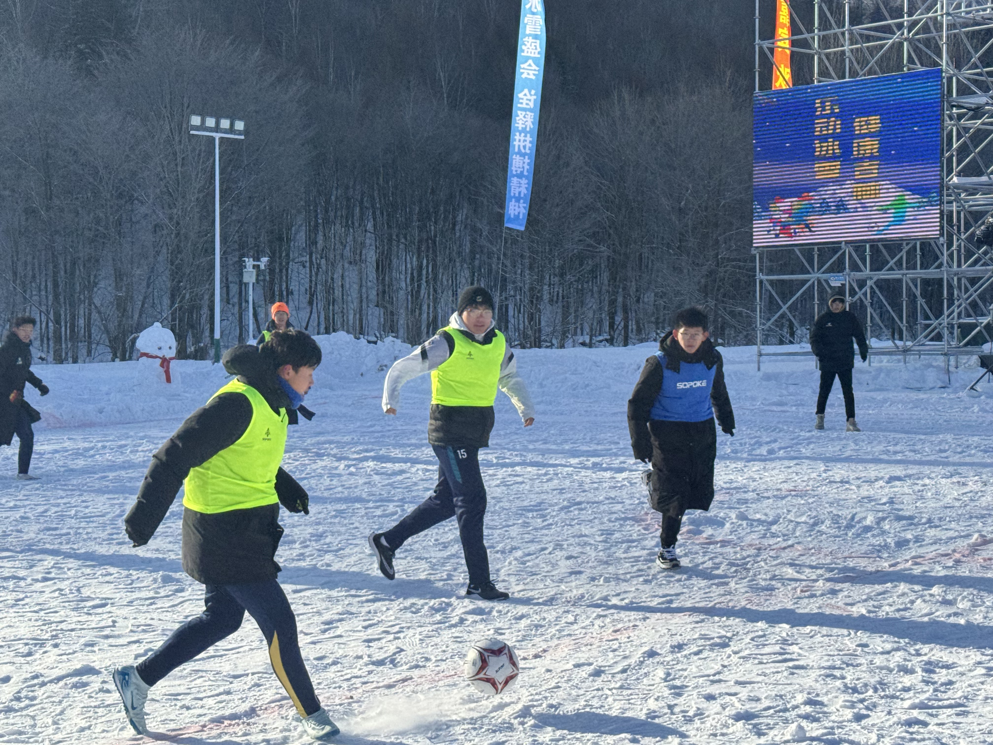 冬日的老白山原始生态风景区白雪皑皑,宛如童话世界中的冰雪王国。景区内大红灯笼高高挂起,处处弥漫着东北特有的风光景色。尽管当日气温寒冷,但参赛者们热情高涨,300名长跑运动员和8支雪地足球队的队员们身着鲜艳的运动装备,与洁白的雪野相互映衬,构成一道亮丽的风景线。长跑选手们沿着精心规划的赛道奔跑前行,穿梭于山林之间,不仅感受到冰雪运动带来的刺激,还能领略到老白山冬季独特的自然风光;雪地足球选手在雪地上奔跑、跳跃、传球,飞扬的雪花与矫健的身姿交织在一起,构成了一幅动感十足的冰雪运动画面。