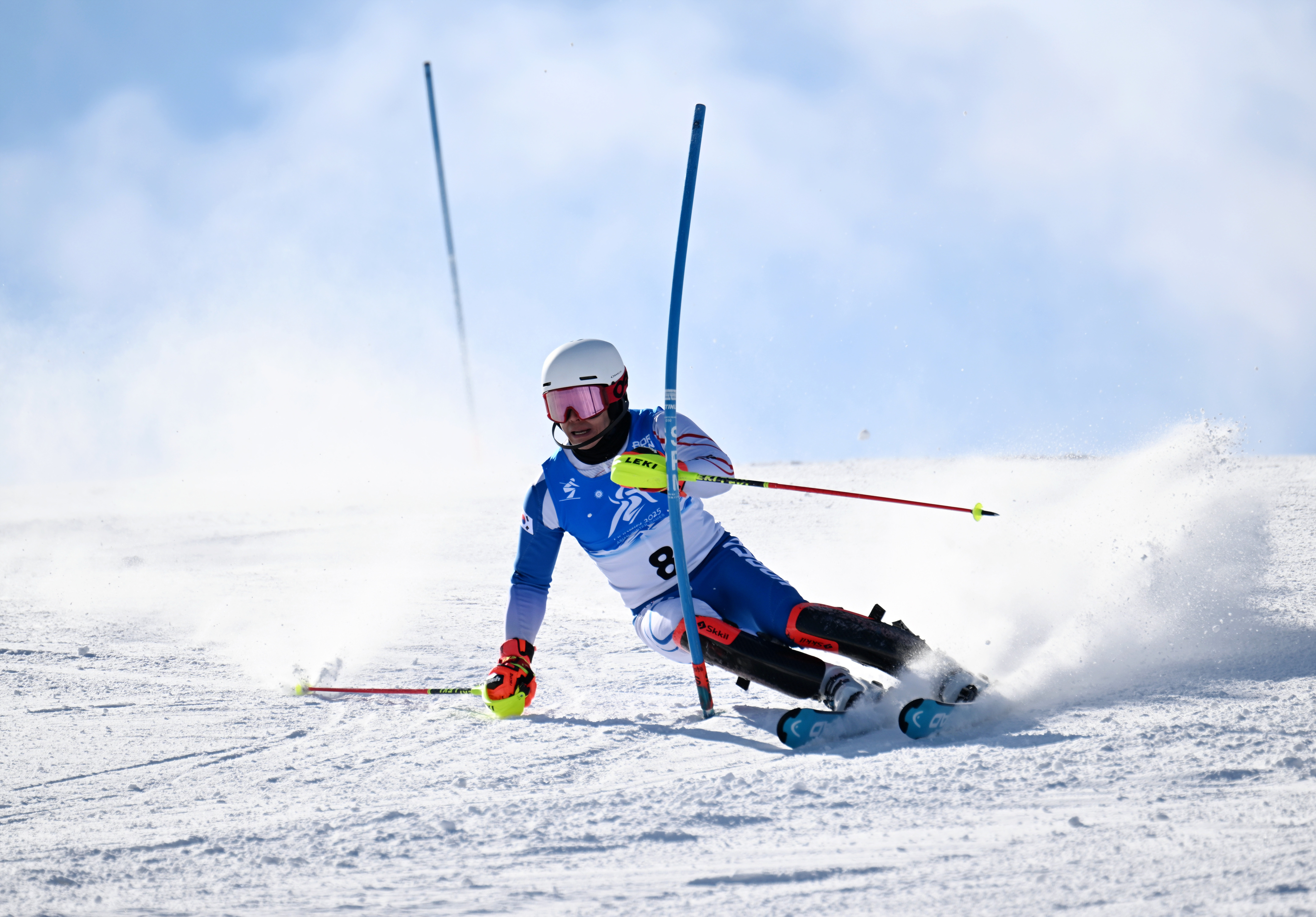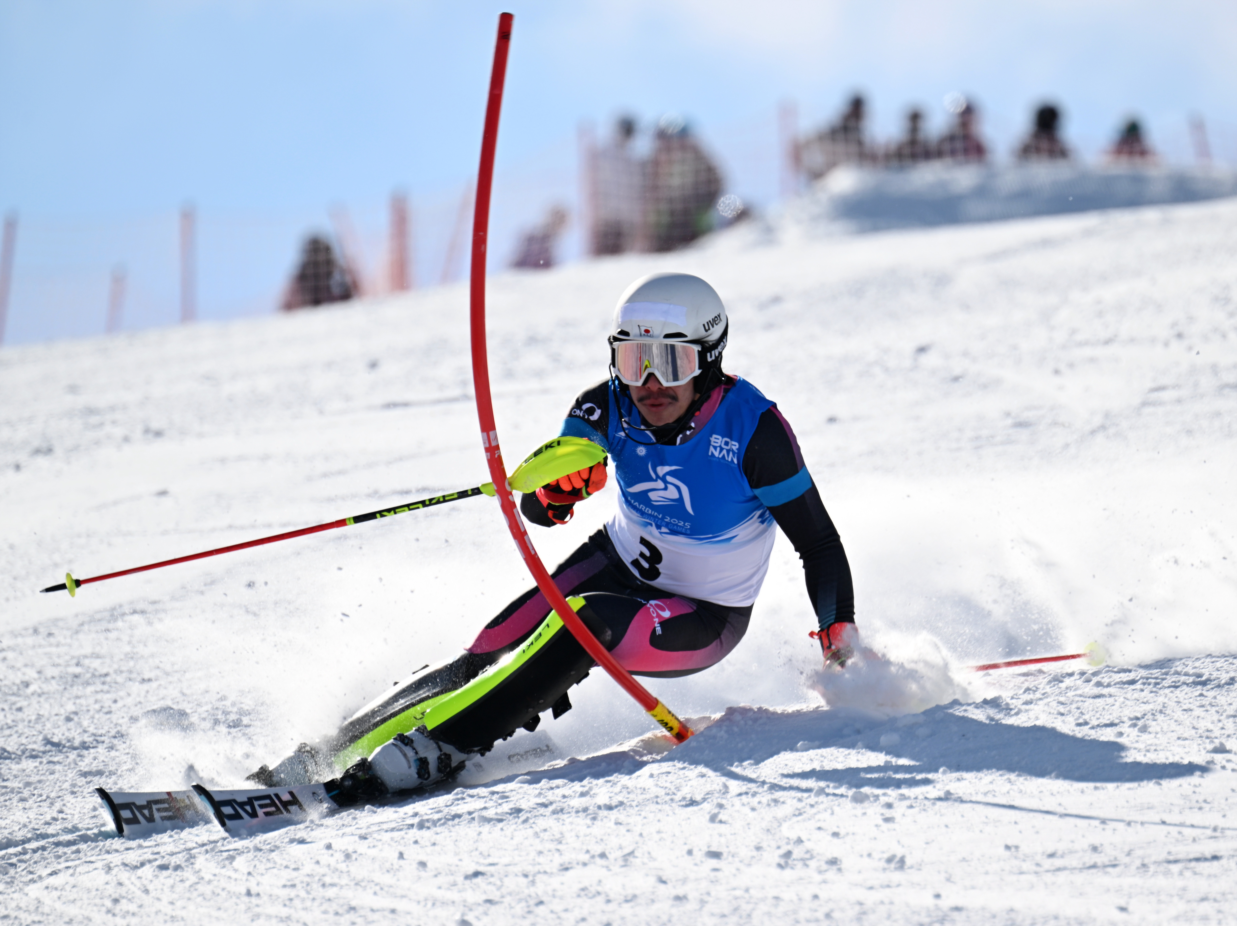 2月9日,第九届亚冬会高山滑雪男子回转比赛在亚布力赛区举行。