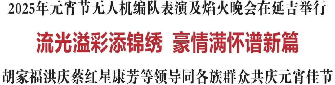 多彩焰火映夜空,绚丽光影送祝福。2月12日是农历蛇年正月十五,当天夜晚,2025年元宵节无人机编队表演及焰火晚会在延吉市精彩上演。省委常委、州委书记胡家福,州委副书记、州长洪庆,州人大常委会主任蔡红星,州政协主席康芳等领导,同全州各族人民和广大游客共赏精彩表演、共庆元宵佳节。