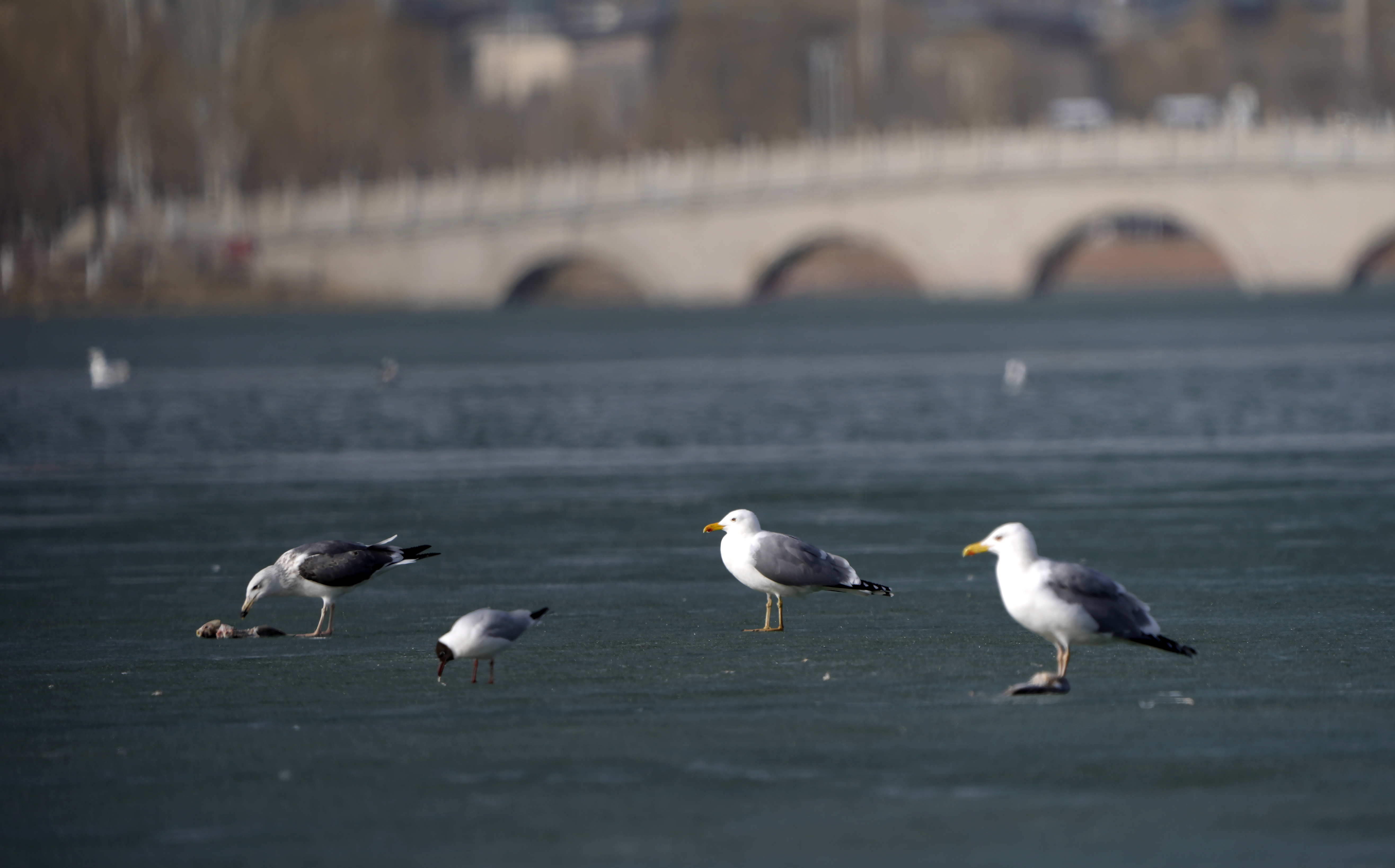 近日,宁夏银川市气温回升,湖面冰雪消融,各湖泊湿地陆续迎来红嘴鸥、遗鸥等候鸟前来栖息、觅食。