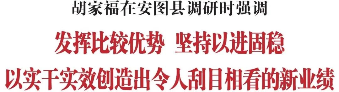 调研中,胡家福指出,安图县地处长白山麓,拥有良好的生态环境和优质的资源禀赋,要紧紧围绕“做优做强特色产业、做精做美山水文章”总思路,聚焦做大总量、提升质量,全力以赴抓招商,千方百计上项目,以实实在在的项目增量推动县域经济发展水平稳步攀升。要在项目建设上加速推进,坚持能早则早、能快则快,牢牢抓住施工“黄金期”,紧盯时间节点和工程计划,优化项目施工组织,加大施工力量投入,争分夺秒抢工期,日夜兼程赶进度,确保项目早日竣工、投产运营。要在服务保障上精准发力,实时关注企业发展态势和经营需求,系统梳理企业经营中遇到的实际困难,在企业高度关注的融资贷款、用工用能、市场开拓等方面“精准滴灌”,切实把政策和服务送到企业急需之处,有效破解制约企业发展的瓶颈制约,助力企业茁壮成长、做大做强。要在招商引资上久久为功,深入分析本地资源禀赋、产业基础和比较优势,明确本地伊利石产业、中医药产业等产业发展的主攻方向,靶向瞄准招商领域,精准锁定目标企业,积极“走出去”实地考察,主动“请进来”对接洽谈,加快引进一批投资体量大、带动能力强的制造业项目,为县域经济发展提供源源不断的动能支撑。