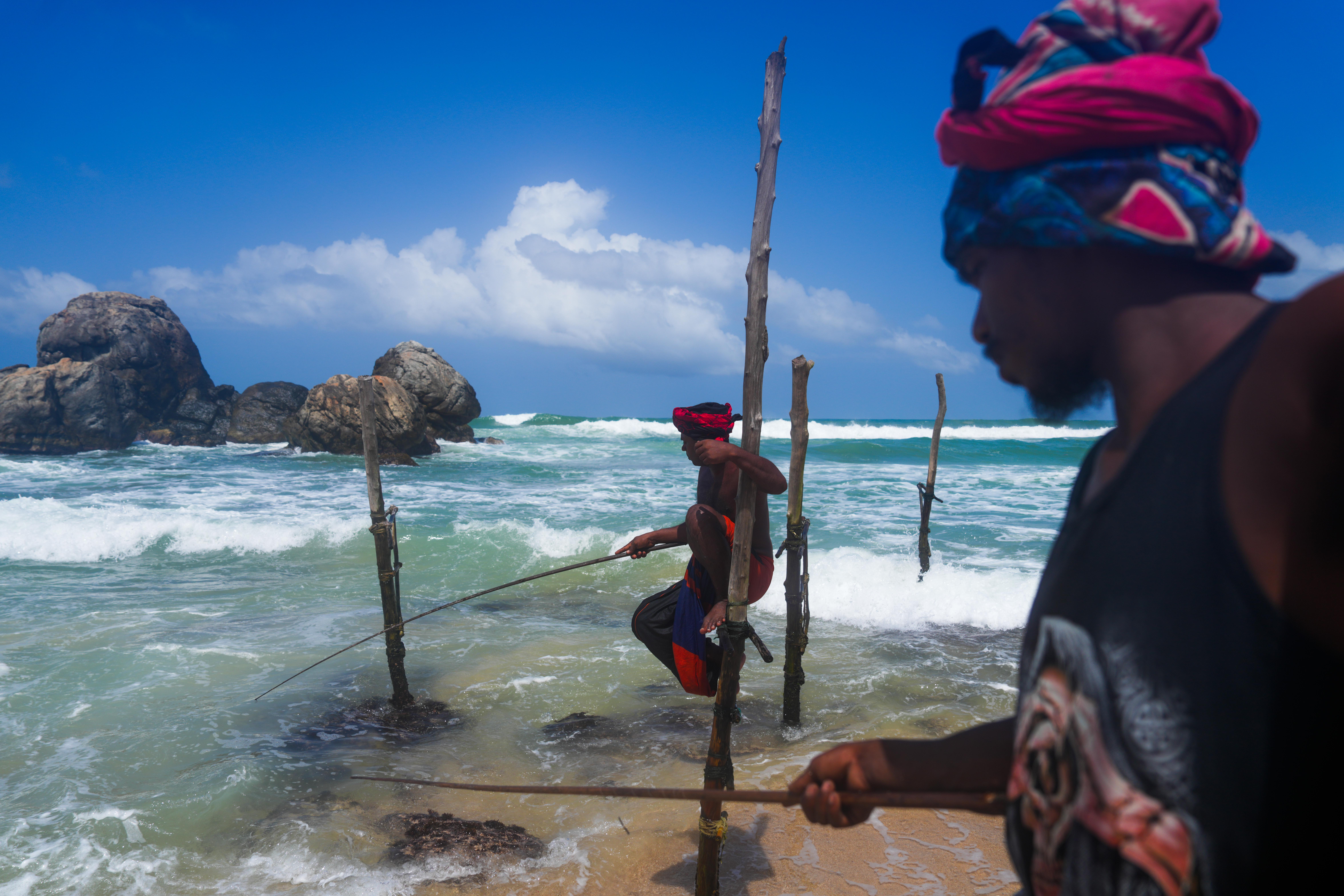 在斯里兰卡西南海岸的浅海区至今仍然保留着一种世界上独一无二的人文景观——“高跷钓鱼”。每到清晨或黄昏,渔夫会涉水爬上木杆,然后端坐其上,手持没有诱饵的渔竿钓鱼,远远望去像是在踩高跷。如今“高跷钓鱼”已成为游客到斯南部城市加勒旅游必看的一道风景。