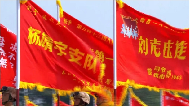 9月3日的阅兵仪式,共有45个方(梯)队受阅,其中有一个战旗方队,由80面抗战英模部队荣誉旗帜组成,充分展现了抗战英雄部队的血脉传承。