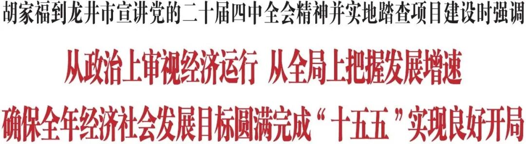 11月3日,省委常委、州委书记胡家福到龙井市宣讲党的二十届四中全会精神,并就项目建设进行实地踏查。他强调,要深入学习贯彻党的二十届四中全会精神,切实把思想和行动统一到全会精神和党中央决策部署上来,从政治上审视经济运行,从全局上把握发展增速,咬定目标、加压奋进,稳扎稳打、精准施策,确保全年经济社会发展目标圆满完成、“十五五”实现良好开局。