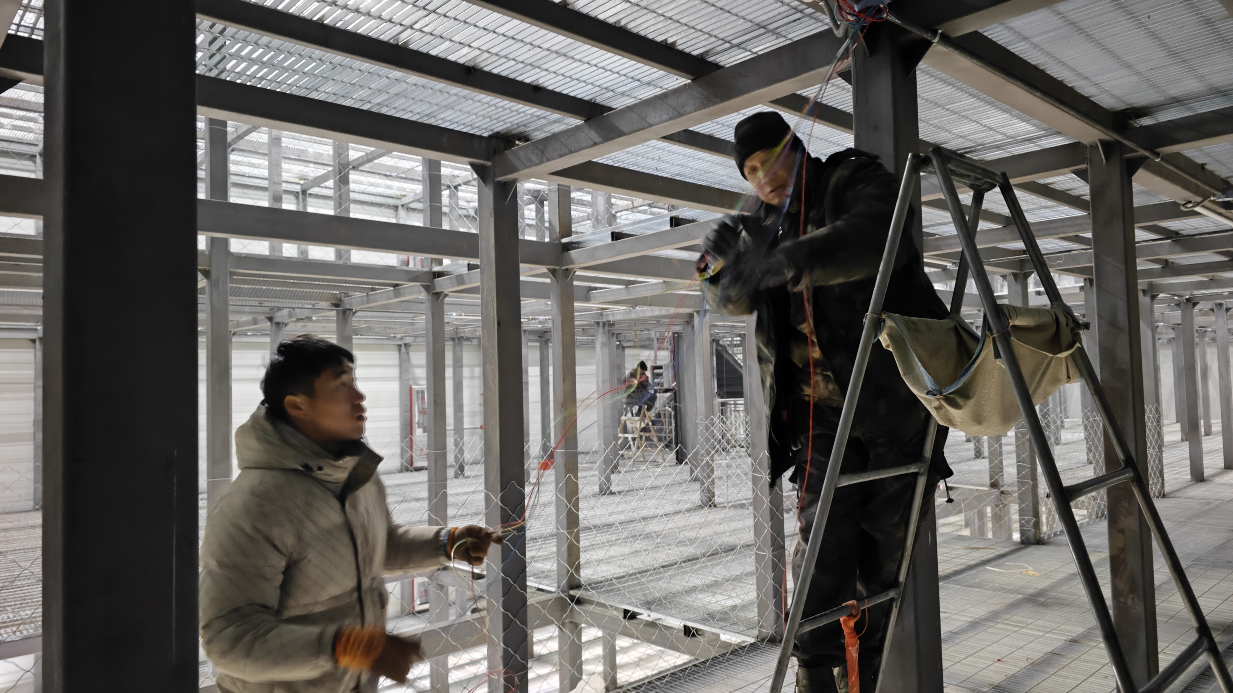 据悉,敦化市医药冷链物流及农副产品与冷冻食品仓储生产加工项目由吉林省乐佰家实业集团有限公司投资建设,总投资7000万元,占地面积1.72万平方米,建筑面积2.5万平方米,主要建设恒温库、保鲜库、冷冻库、分拣车间、加工包装车间、仓储配送中心及5G智能交易平台等生产设施。目前,分拣车间、生产车间、冷冻库、办公楼、恒温库等的主体施工已完成。记者走进一栋宽敞明亮的生产车间,看到几名工人正忙着安装电线。工人介绍,这栋车间共有三层生产区,每层面积3000平方米,总面积达9000平方米,这样规模的车间项目内共有13栋。目前,项目正在积极推进水电线路布局和内部装修工作,确保在春节前全力冲刺开工生产。
