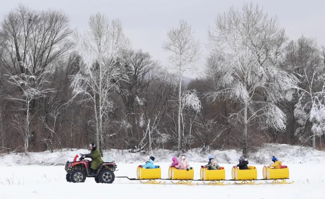 在长白山和平滑雪场,“小雪友”们在教练的指导下尽情体验滑雪带来的乐趣,雪道上满是灵动的身影;长白山百花谷朝鲜族古村落、大泉河漂流等景区景点也迎来客流热潮,学生与家长或体验民俗文化,或穿梭于雾凇秘境,或畅享雪地摩托、马拉爬犁等趣味项目,沉浸式感受安图冰雪的独特魅力。