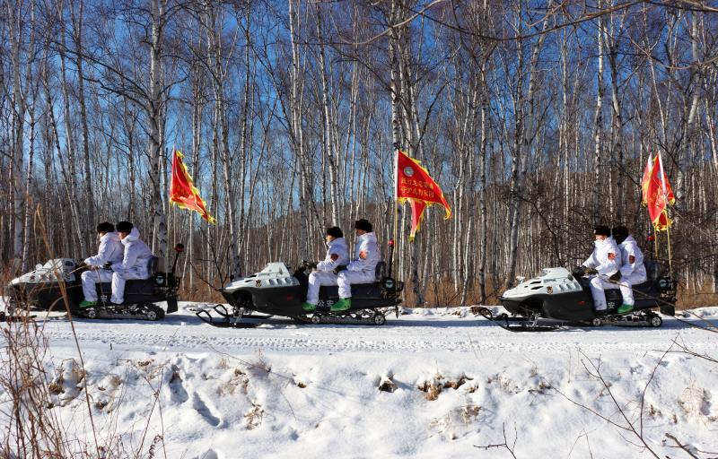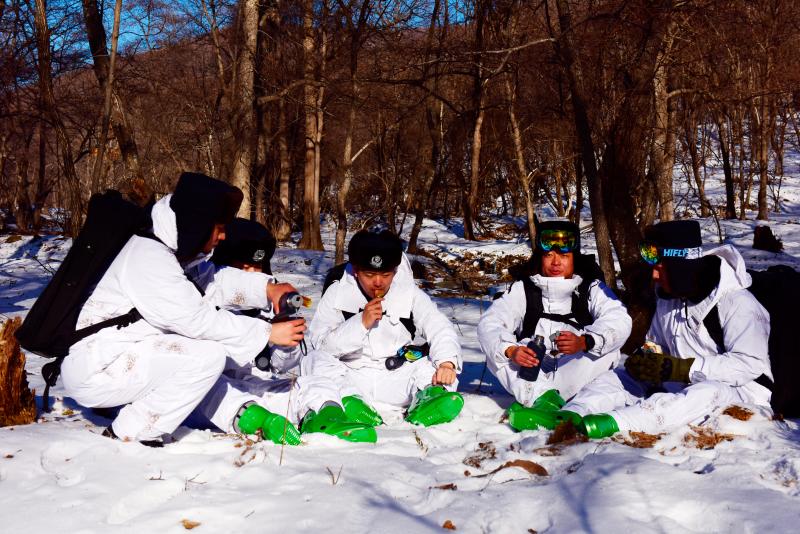 穿林海、跨雪原,林海雪人巡逻队成为一支打击非法涉林涉猎犯罪活动的急行军。一个面包、一根火腿肠、一杯热水是他们的午餐,收队时天空已经露出暮色。队长李承轩告诉队员,明天的任务是查看千年红豆杉是否有人为破坏和生长情况。这时民警在车上唱起了“穿林海、跨雪原、气冲霄汉……”一股豪迈之情在车内回响,一天的劳累随之一扫而光。