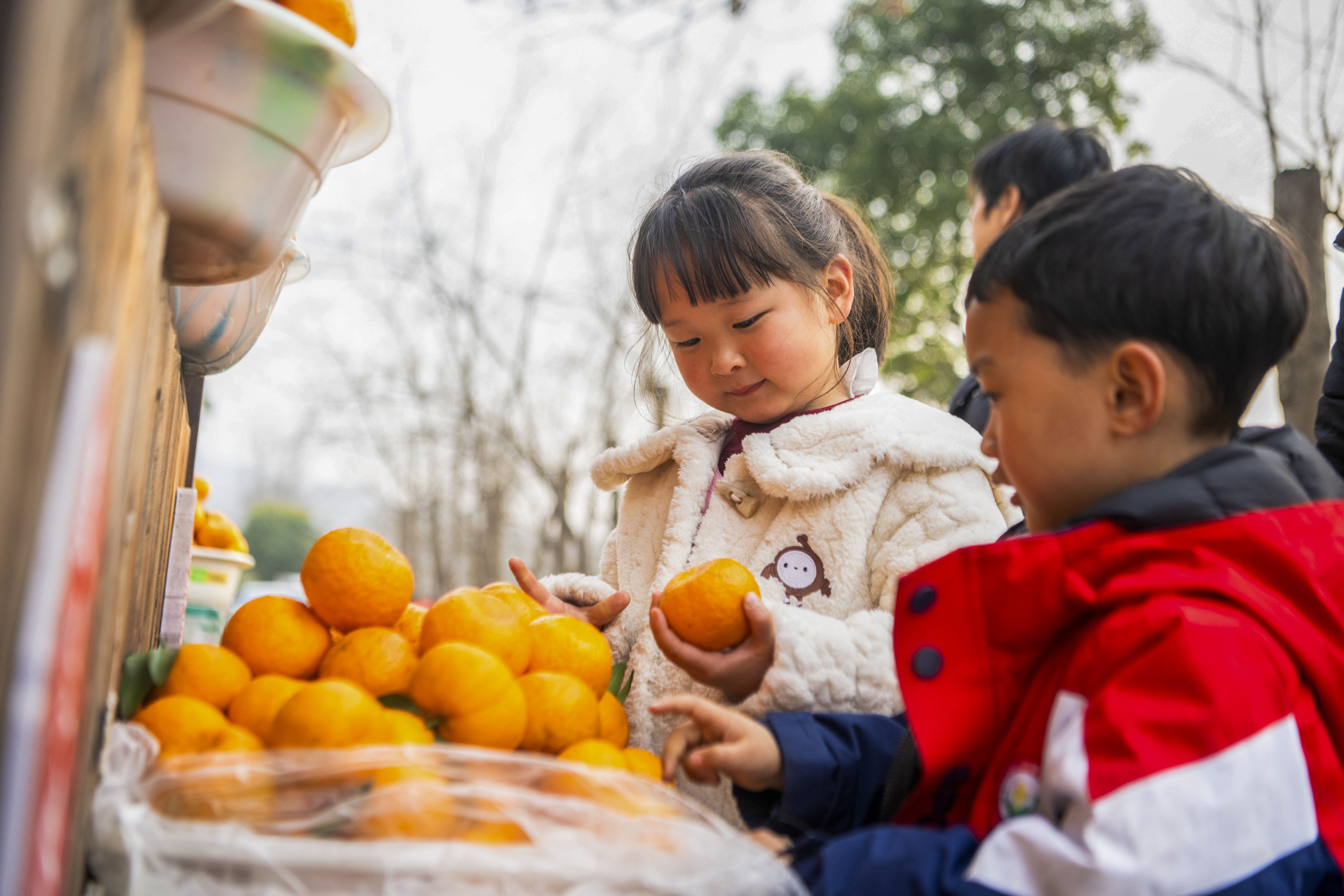 近日,重庆市黔江区阿蓬江沿岸数千亩柑橘林迎来丰收季,当地通过举办采摘体验、线上直播等活动,拓宽柑橘销售渠道,推动柑橘出村进城,有效促进农民增收和乡村产业振兴。