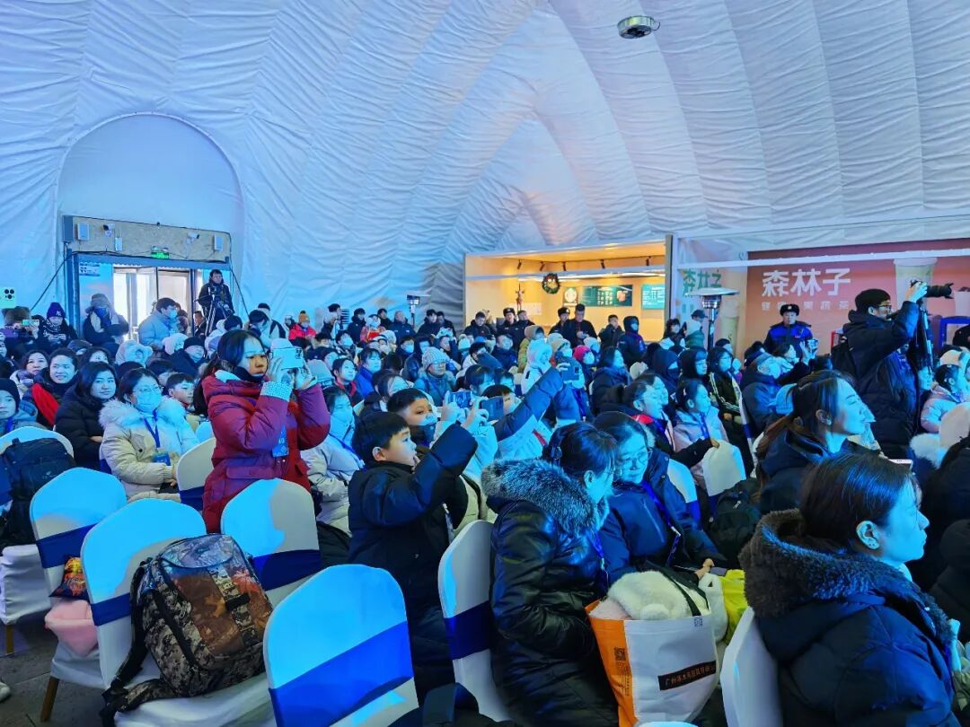 真挚的呼唤未落,冰雪乐园的欢声已然应和。启动仪式后,系列精彩活动陆续展开。“乐享天伦”亲子家庭体验活动在雪国列车创意手工区举行,孩子们充分发挥想象力,用彩纸、颜料等材料拓印出一个个精美的春节“福”字手工作品。来自和龙市第二幼儿园的孙昊琛举着自己做的“福”字作品,兴奋地告诉记者:“老里克太好玩儿了!我和爸爸妈妈坐了雪国列车,还一起做了‘福’,希望全国的小朋友都来这里玩儿!”