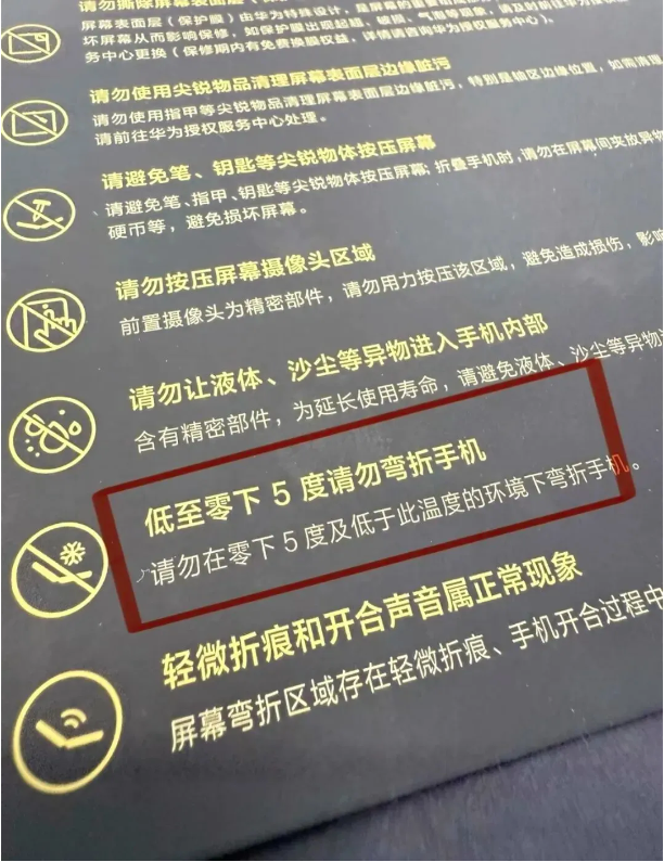 一家手机品牌授权维修店工作人员表示,近日到店因温度太低维修折叠屏手机的顾客不太多,“现在很多人都知道折叠屏手机在低温室外不要打开了,手机开箱时也有注意事项提醒温度太低时不要折叠”。