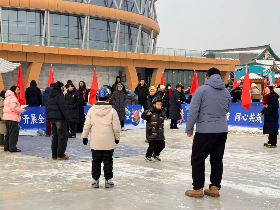 在民族特色展区,秧歌、朝鲜族农乐舞、满族歌舞联唱等各民族特色文艺表演轮番上演,彰显了多元文化融合。在冰上民俗体验区,冰车竞速、冰上陀螺对战、家庭冰车赛、打冰棺表演等传统游艺项目,吸引了众多游客体验冰上运动的速度与激情。在民族团结互动区,设置了“冰上新年心愿墙”打卡地、红色主题拍照框,搭配春联、福字等节日氛围的装饰品,令游客和群众驻足拍照,留下美好纪念。在年味市集及特色美食区,游客和群众一边聆听着优美的伽倻琴、洞箫演奏,一边品尝特色美食,并一站式选购明太鱼、粉条、米肠、辣白菜、打糕等新年好物……这些“冰上竞技+民俗体验+各族同乐”的春节特色活动,充分展示了敦化市民俗文化与冰雪资源双重优势,营造了各族人民一家亲、冰天雪地庆团圆的喜庆节日氛围。