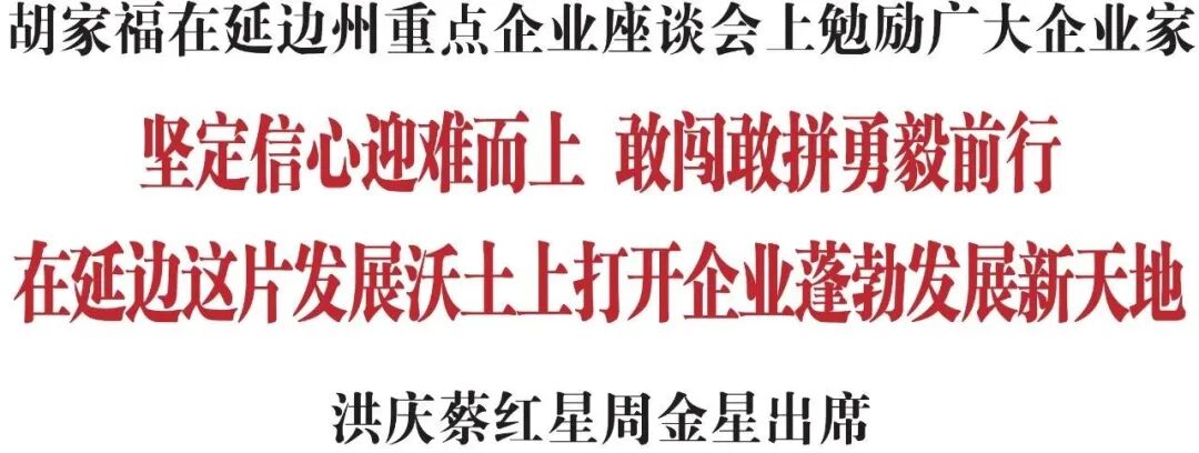 胡家福强调,今年是中国共产党成立105周年,是“十五五”开局之年,也是推动延边跨越赶超的关键之年。前不久召开的州委十二届十次全会和州委经济工作会议,立足延边发展的阶段性特征,提出了打造“一极两地三区”的发展目标。实现这一美好愿景,既需要全州广大党员干部担当作为、拼搏实干,更需要广大企业家挺身而出、多作贡献。希望广大企业家继续深耕延边,深度融入全州发展大局,以更加充足的干劲闯劲把企业办得更好、把事业做得更大,为加快推动延边跨越赶超贡献企业力量。要稳步扩大经营规模,深入研究行业动态、仔细分析市场趋势,对看准的优质项目和新兴市场,灵活运用股权投资、合作经营、资本并购等方式果断切入、抢占先机,努力培育企业新的盈利增长点。要着力加强自主创新,始终把技术研发和产品创新摆在企业发展的突出位置,持续加大研发投入,注重嫁接科研院所技术成果,努力开发更多符合市场需求、独具特色优势的“拳头产品”,以产品的推陈出新塑造竞争优势、赢得市场主动。要积极开拓销售市场,坚持线上线下双向发力,准确把握产品特点、市场定位和比较优势,积极参加经贸交流会、行业论坛、展销会等活动,加强与大型商超、电商平台的战略合作,让更多产品走出延边、走向全国,进一步扩大市场版图、提升市场份额。