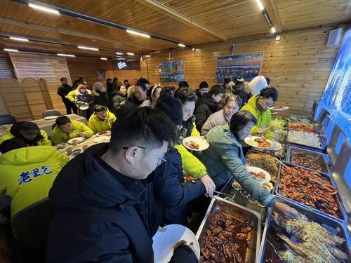 2月16日当晚,这里迎来了一场别开生面的“冰雪除夕”聚会,百余名中外游客与景区40余名工作人员共同度过了一个极具东北风情的新年。