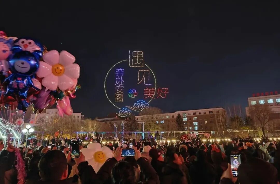 19时20分,科技与艺术完美交融的无人机表演将气氛推向高潮。数百架无人机在夜空中翩然起舞,相继变幻出“骏马奔腾”“金达莱花开”等绚丽图案,以现代语言诠释“龙马精神”,引来阵阵惊叹。在万众期待中,“马到成功烟火和龙”主题焰火表演压轴登场。一时间,流光溢彩的焰火竞相绽放,照亮了城市夜空,也映红了现场一张张洋溢着幸福与喜悦的笑脸。璀璨光华之下,红太阳广场化为欢乐的海洋,人们仰望绚烂天幕,共同许下对家国昌盛、万事顺遂的美好期盼。