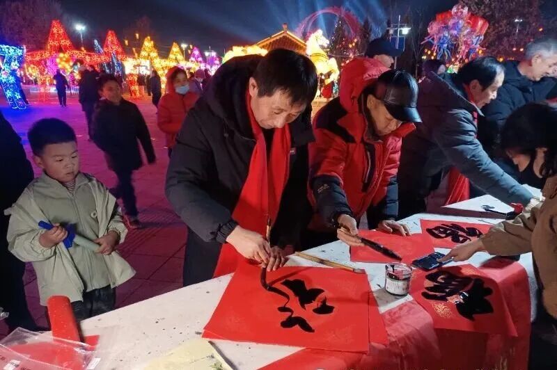 18时,“红太阳照边疆”游园主题灯展将广场装扮成光影世界,一组组寓意深远、造型精美的花灯,生动展现了边疆儿女的赤子情怀与家乡山河的壮美。“万福迎春”全民书写万福活动现场墨香四溢,男女老少执笔挥毫,一个个“福”字承载着对丙午马年的美好祈愿。移步至“马年祥瑞·万马奔腾”学生手工灯展区域,孩子们精心制作的各式花灯,将童趣创意与生肖元素巧妙结合,引得市民纷纷驻足欣赏、拍照留念。