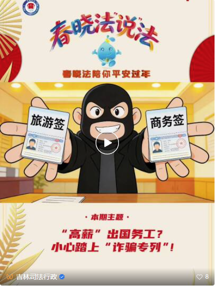 春节假期结束,返岗复工之际,各类诈骗案件进入高发期。看到招聘广告上“年薪百万”“包吃包住”“快速出境”等诱人信息,务必要打起十二分的警惕。本期【请你来辟谣】邀请吉林普法宣传IP形象“春晓法”为大家讲清楚!