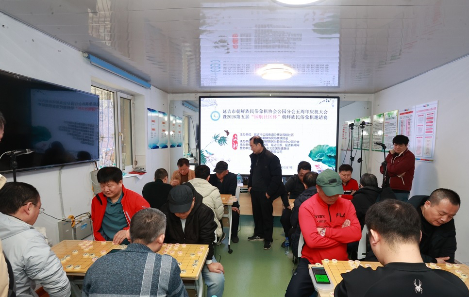 2月27日,2026第五届“园航社区杯”朝鲜族民俗象棋大赛,在延吉市公园街道园航社区举行。来自延吉市各社区的26名朝鲜族民俗象棋爱好者欢聚一堂,以棋为媒,各展棋艺,共话友谊,进一步增强民族团结向心力。