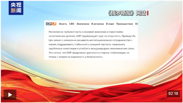 俄罗斯主流媒体、俄罗斯政府机关报《俄罗斯报》官方网站刊文指出,尽管全球经济动荡,供应链结构调整,但中国政府仍再次明确释放扩大高水平对外开放的积极信号,同时也更加注重可靠性和安全性。文章称,中国政府工作报告高度重视科技创新和建设现代化产业体系。