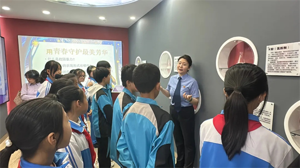 来自延吉市各中小学校的学生代表在未成年人法治教育基地还参观了“法治园”“案例园”“自护园”“科技馆”四大展厅,学习了“犯罪记录封存”“合适成年人到场”等未成年人案件办理特殊的法律制度和规定。在案例园中,未检干警围绕学校、家长关注的未成年人沉迷网络问题、校园暴力问题,结合直观案例,用通俗语言,为大家讲解了网络背后的“陷阱”、应对校园暴力的“妙计”,引导其唯有胸怀理想、努力学习才能成为真正的“王者”。