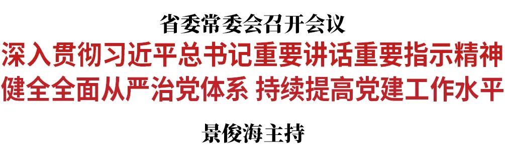 今天(6月16日),省委书记景俊海主持召开省委常委会会议,集中学习《求是》杂志上发表的习近平总书记重要文章《健全全面从严治党体系 推动新时代党的建设新的伟大工程向纵深发展》精神,研究我省贯彻落实举措;审议通过《第八届全球吉商大会总体方案》。