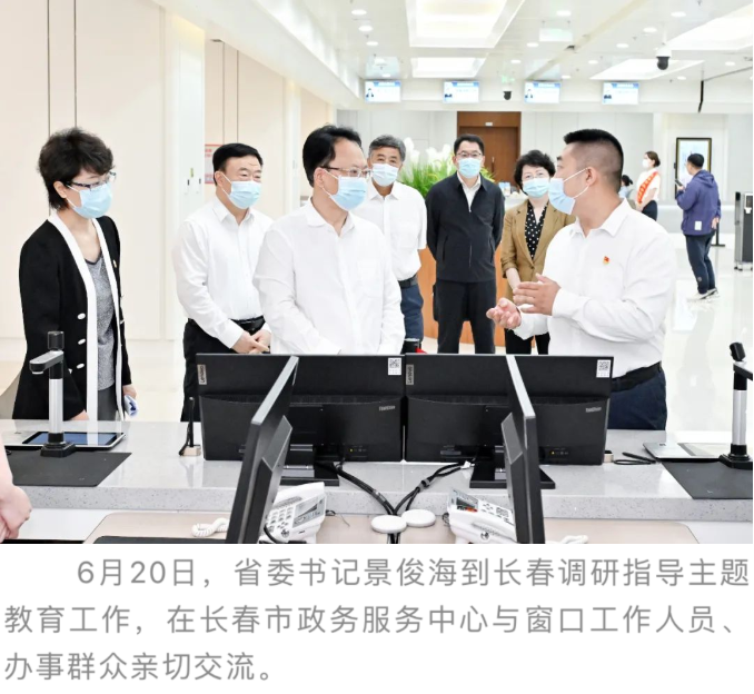 景俊海首先来到长春市政务服务中心,与窗口工作人员、办事群众亲切交流,要求长春市进一步创新政务服务模式,持续提升办事效率,更好方便群众。景俊海现场观看政策服务数字化场景应用演示,强调要深入推进政务服务数字化,把更多新业务新功能纳入“一网通办”“一码通办”,推动数字政府建设取得更大成效。在长春市市长公开电话办公室受话大厅,景俊海详细了解12345政务服务便民热线工作情况,强调要充分发挥便民热线沟通群众的桥梁纽带作用,进一步完善部门联动的问题解决机制,群众反映集中问题要及时公开处理进度和结果,切实以为民办实事、解难题的具体成果检验主题教育成效。