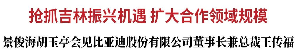 今天(7月15日),省委书记景俊海,省委副书记、省长胡玉亭在长春会见比亚迪股份有限公司董事长兼总裁王传福一行。
