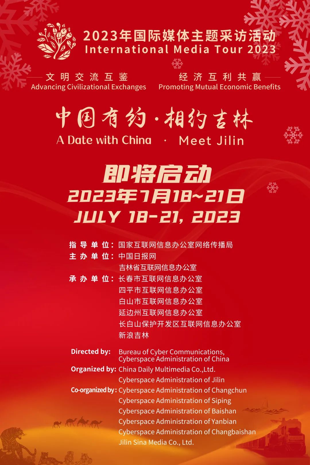 2023年“中国有约·相约吉林”国际媒体主题采访活动将于7月18日正式开启。今年的主题为“文明交流互鉴 经济互利共赢”,继续邀请外媒记者、外国网红、外国专家、驻华使节等外籍代表,与中国网络媒体记者一起,以“边采访、边传播、边研讨”的形式,前往吉林省多地进行深度探访和报道。
