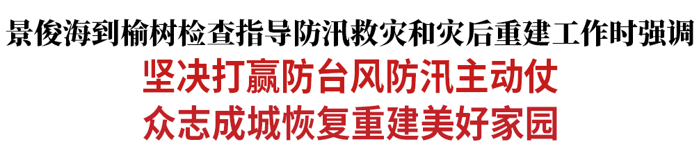 景俊海十分关心抗灾保粮工作情况。他走进田间地头,俯身察看农田过水情况,要求迅速组织农民开展生产自救,科学补种改种、抢收挽损,抓紧修复水毁农田设施,帮助农民申办农业保险理赔,最大限度降低灾害影响,全力保障稳产增产、夺取全年粮食丰收。检查指导中,景俊海强调,当前,我省防台风防汛正处在紧要关头。各级党委政府必须保持“时时放心不下”的责任感,坚决克服麻痹思想、侥幸心理、厌战情绪,严阵以待、严密防范、严守底线,全力做好防台风防汛各项工作,切实保障人民群众生命财产安全和社会大局稳定。要扎实做好监测预警,针对台风动向和雨情汛情变化,动态调整防范措施。要扎实做好人员转移避险,紧盯河流沟道沿岸、山洪滑坡泥石流塌方易发区、低洼区域村庄等重点风险区,遇到突发紧急情况,第一时间坚决果断彻底转移涉险群众,确保不留死角、不漏一人。要扎实做好堤坝固防除险,加强江河湖库巡查值守,严防灾害叠加带来险情,全力保障重点水库安全运行。要扎实做好应急准备,救援队伍、装备物资要迅速预置到位,确保关键时刻发挥关键作用。景俊海要求,榆树、舒兰、扶余等地要加快推进灾后重建工作,尽快恢复灾区正常生产生活。要抓紧修复受损道路交通、电力通讯、公共服务等基础设施,尽快修缮重建损毁房屋,让受灾群众早日安全重返家园。要抓紧组织农业防灾减灾救灾,加快农田排水退水,迅速开展在田作物生产恢复,抓好畜禽养殖圈舍等重点部位消杀和死亡畜禽无害化处理。要抓紧做好卫生防疫工作,大力宣传普及卫生防疫知识,加强重点疾病特别是传染病监测预警,组织医务人员深入各安置点做好医疗服务,确保人民群众身体健康。要抓紧强化市场保供稳价,加强困难群众帮扶,坚决杜绝因灾返贫致贫。要抓紧完善应急指挥体系,统筹调度各类资源力量,确保恢复重建工作有力有序有效推进。