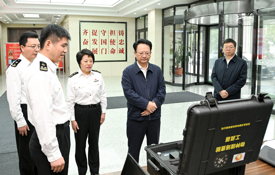 景俊海首先来到海关智能化查验技术展示区,观摩现场查验装备操作演示,察看守护国门安全成果,勉励全体同志始终胸怀“国之大者”,站在维护国家“五大安全”政治高度,科学运用数字化、信息化技术手段,不断提高行政执法能力水平,扎实做好监管、缉私、检验检疫等工作,当好让党放心、让人民满意的国门卫士。