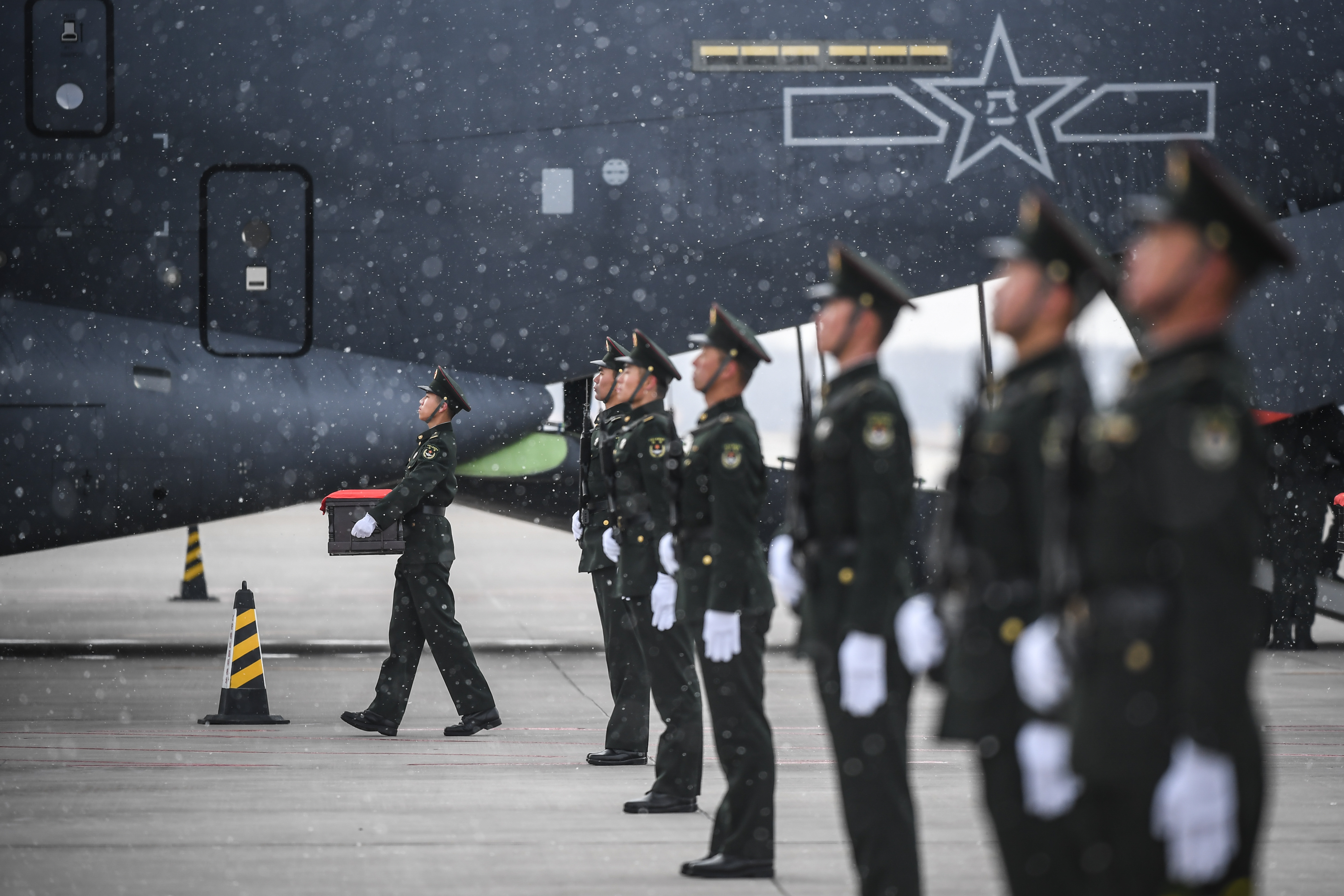 11月23日,第十批在韩中国人民志愿军烈士遗骸由我空军专机护送从韩国接回辽宁沈阳,25位志愿军烈士遗骸及相关遗物回到祖国。