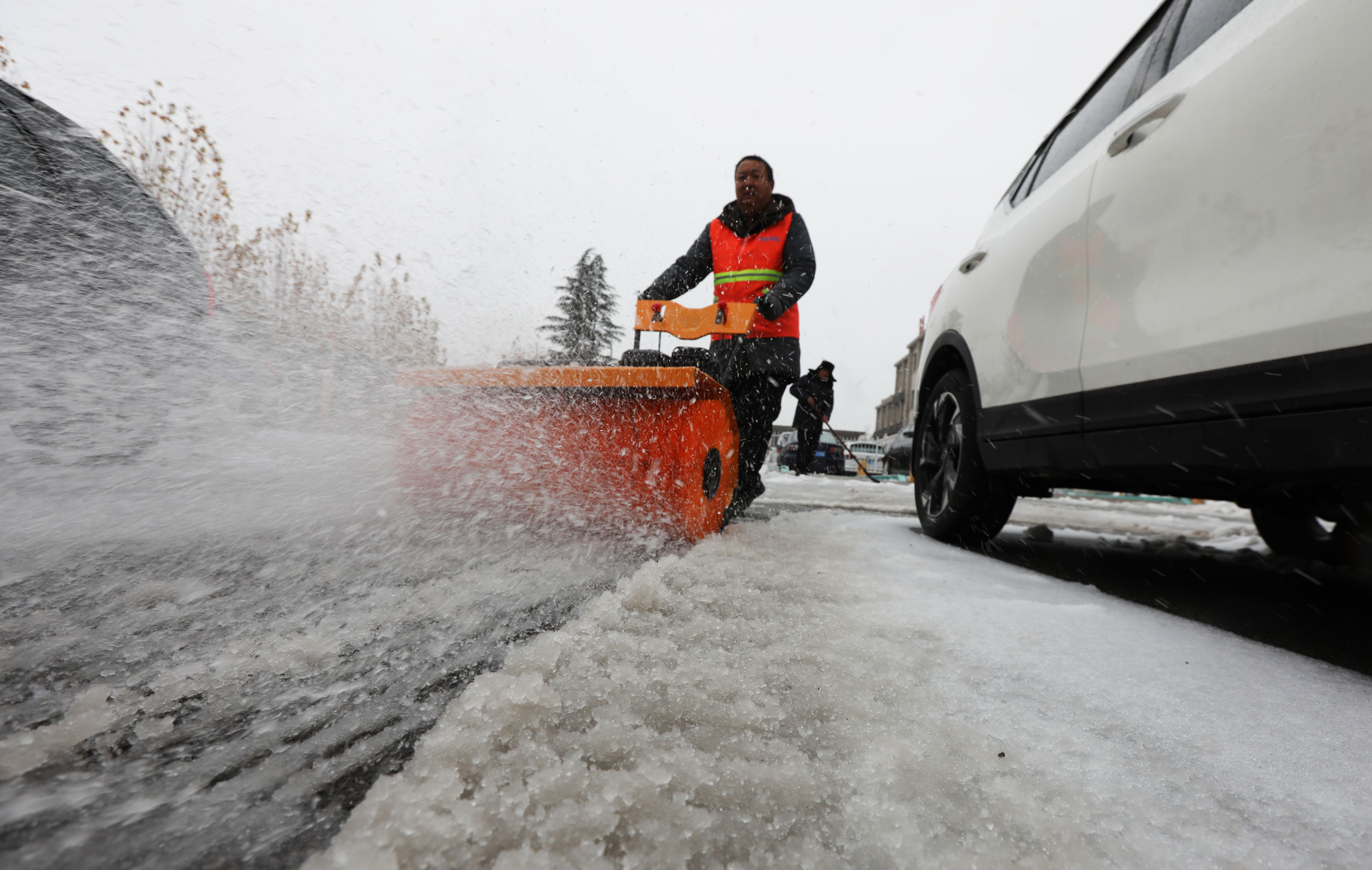 12月14日,我国部分地区大范围雨雪降温天气仍在持续,中央气象台发布寒潮橙色预警,暴雪、冰冻黄色预警和大风蓝色预警。各地有关部门组织人力清理积雪,保障安全。