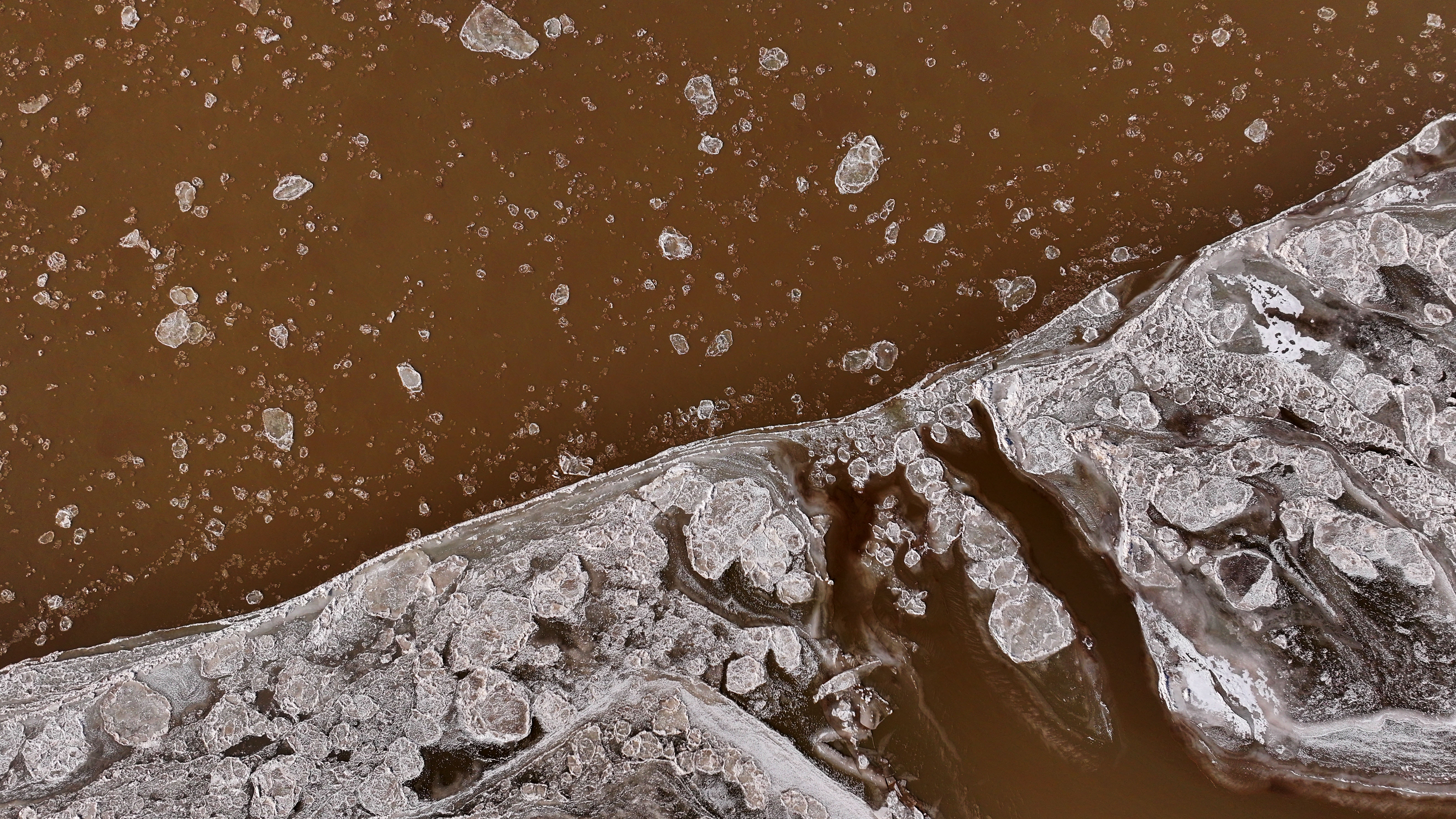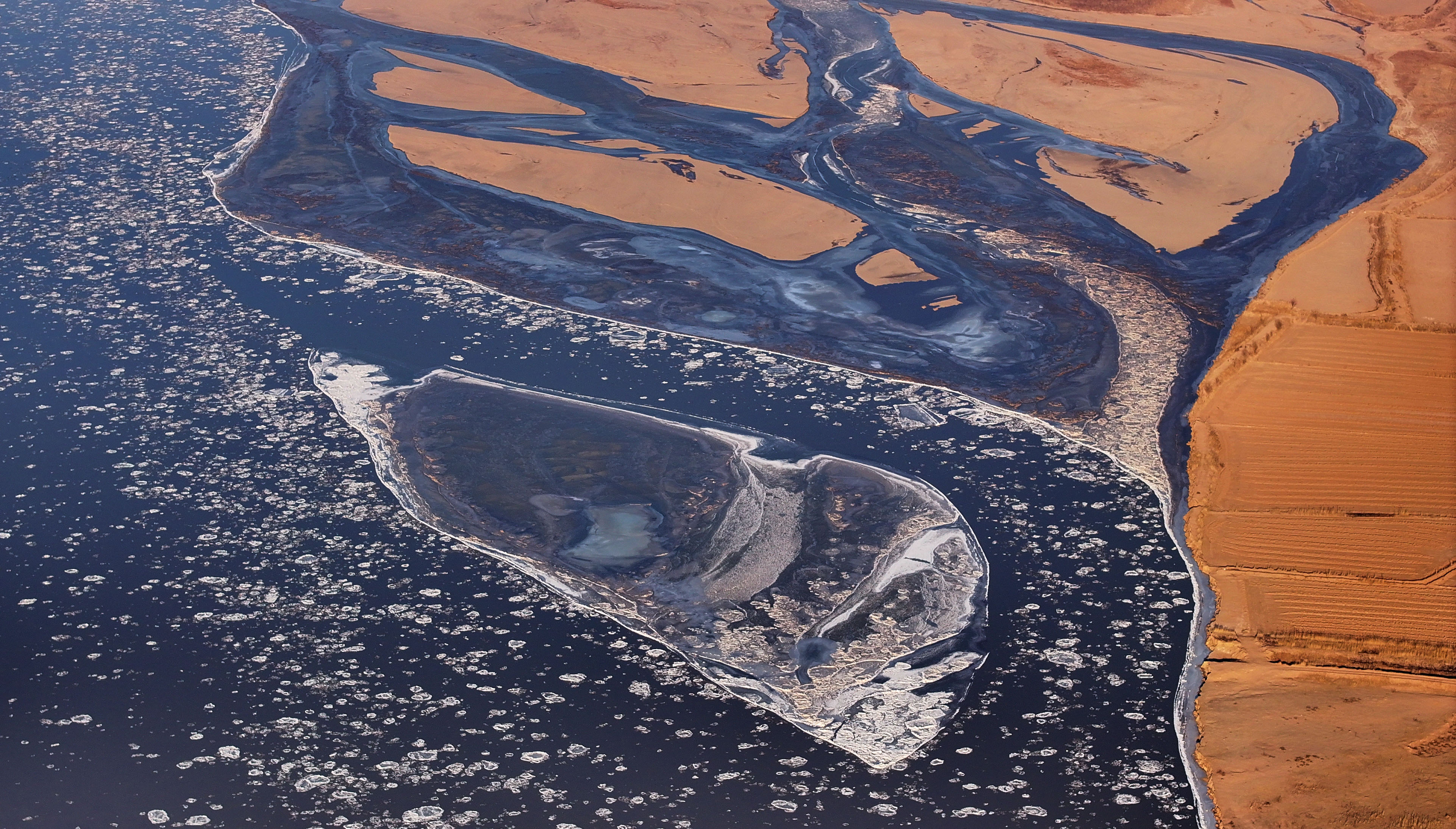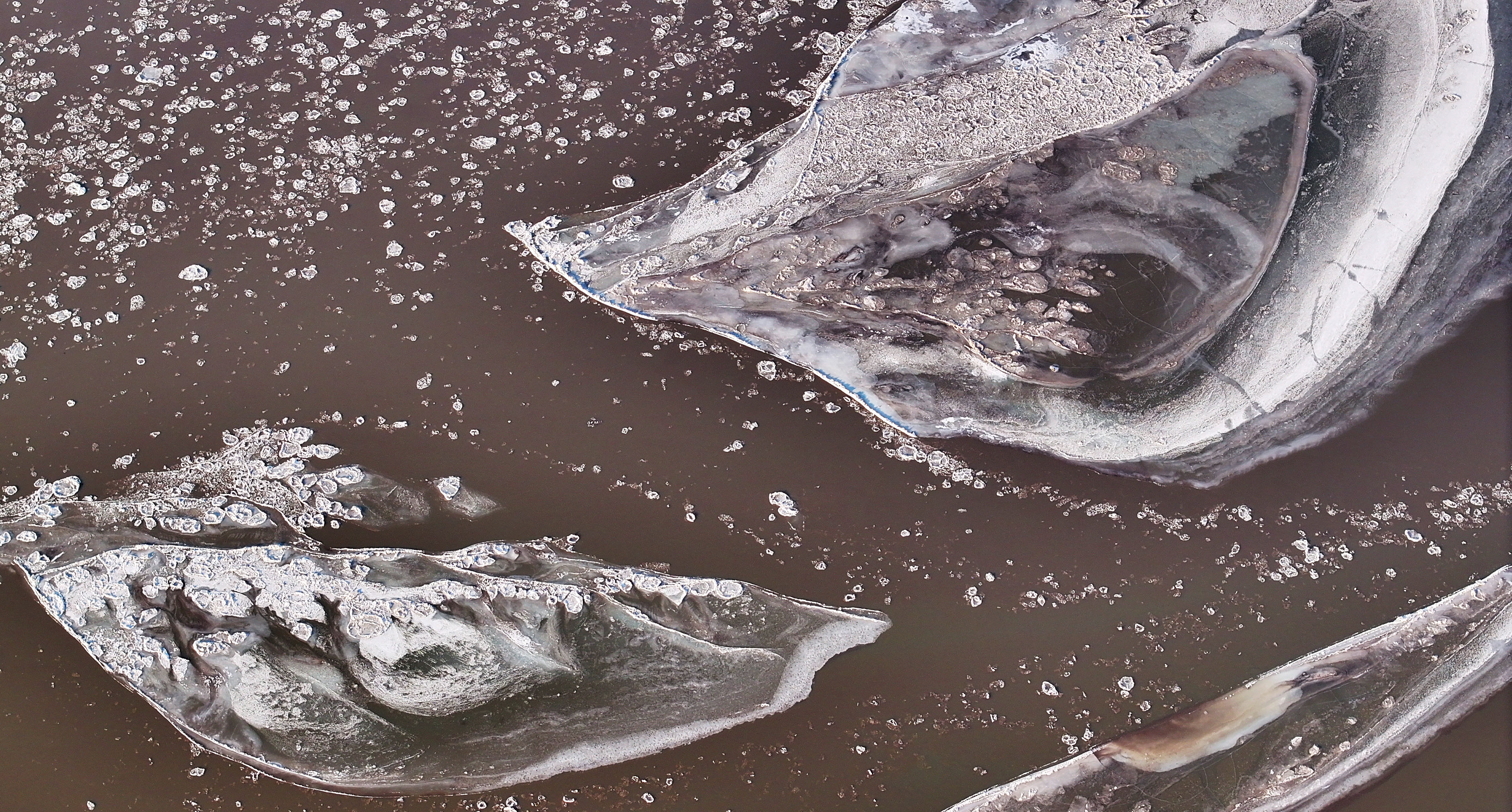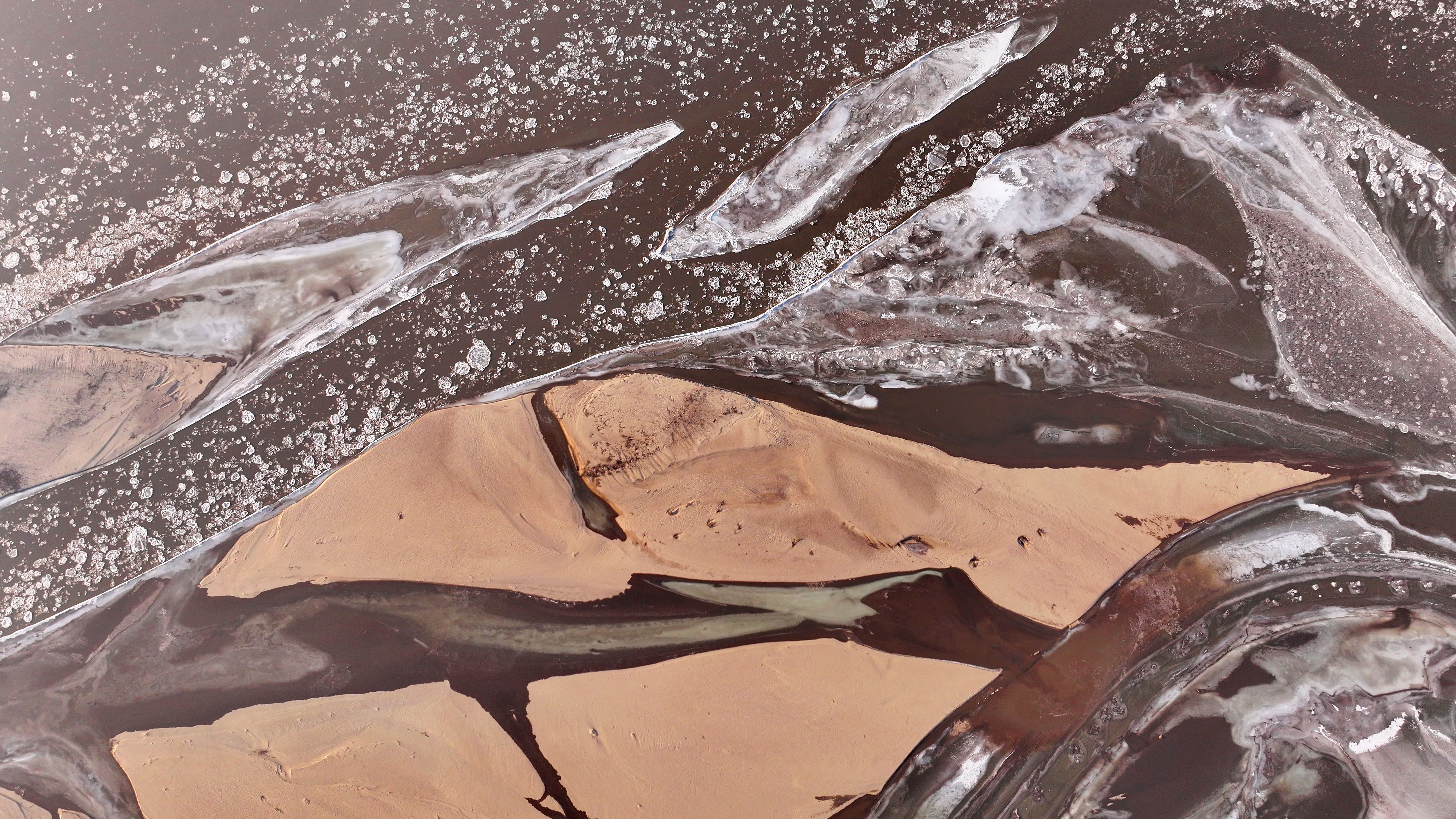近日,受持续低温寒潮天气影响,黄河宁夏段出现流凌景观。朵朵冰凌,如同盛开在河面上的“冰花”,与黄河两岸的冬日景色构成一幅独特的黄河冬景图。