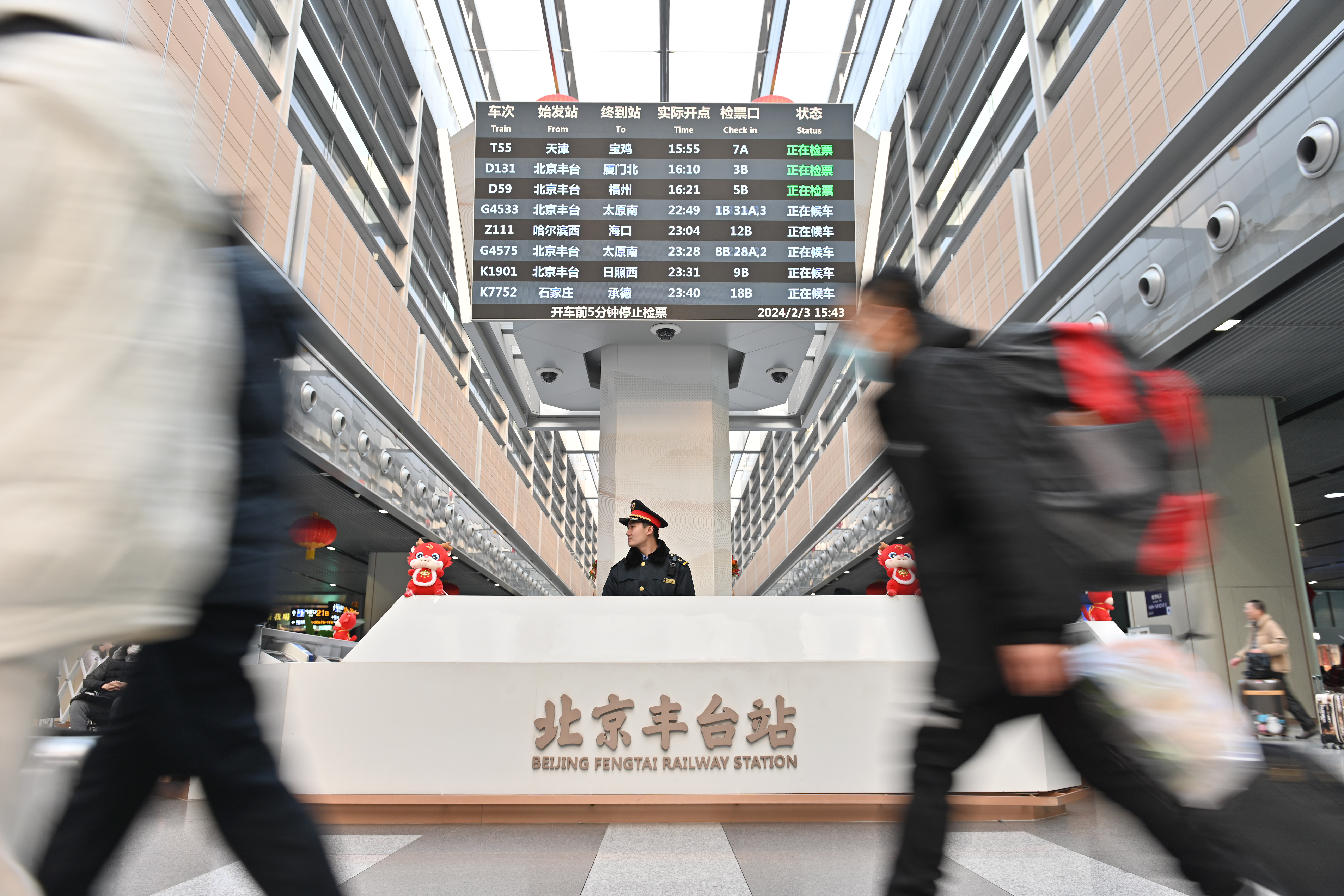 2月2日起,北京丰台站迎来春运客流高峰期。据北京丰台站统计,该站3日发送旅客预计达7.7万人,比春运首日增长60.4%。