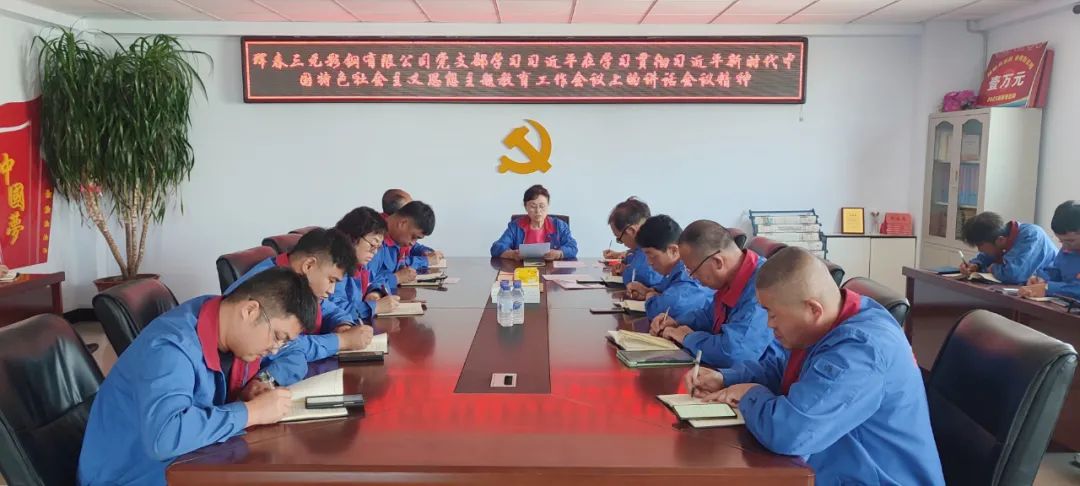红色读书角、党建展示墙、党群活动室……走进珲春三元彩钢有限公司,浓厚的党建氛围扑面而来,王秀伟与公司青年党员、企业职工们正在学习铸牢中华民族共同体意识的实质内涵。