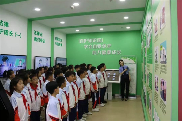 在法治教育展厅,同学们观看了法治宣传片,学习了法律的相关知识,并通过文字图片展板、视频等了解了未成年人成长过程中容易遇到的各种问题,进一步接受了网络、交通等安全教育。