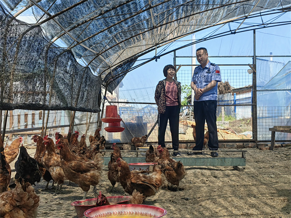 邹亚芳是当地的养鸡户之一,去年,她家养了800余只鸡,养鸡需要技术和耐心,但销售更需要渠道。邹亚芳说,平时,民警经常来她家帮助解决各种养殖问题,帮助她们干农活,最主要的是,民警通过微信群的宣传,帮助她们往市里销售了成鸡,让她们有了信心,于是今年又增加了养殖数量。